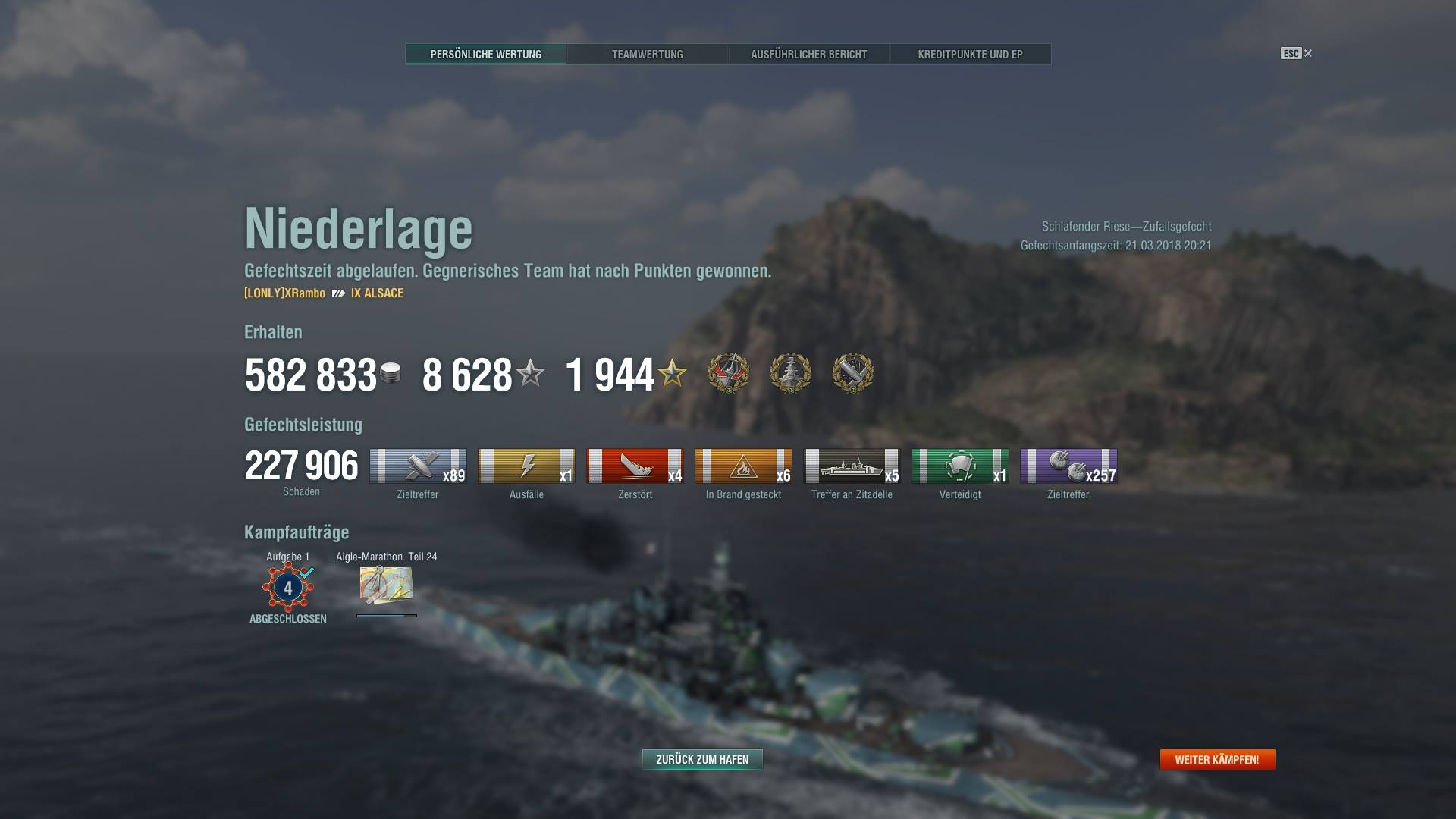 - und zuletzt auch zumindest relativ (ohne Schritt zurück) die Torpedonachladezeit