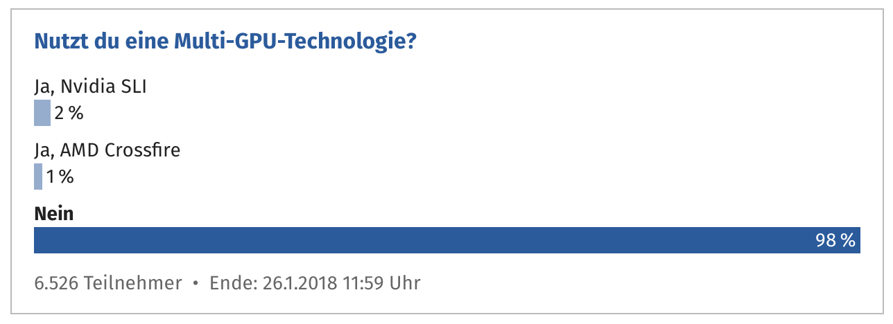 Bei der Frage ob mein Bildschirm Freesync oder Gsync nutzt steh ich wie n Idiot da, da ich beides angekreuzt habe. Da bin ich wohl wirklich einer der wenigen die nen Gsync und nen Freesync Monitor gleichzeitig betreiben.