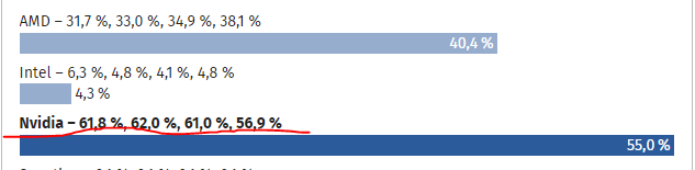 Ich finde es super dass sich Nvidia und AMD hier in der Community bei den GPUs so die Waage halten - so wie man es erwarten würde, wenn beide Hersteller gute Produkte haben.