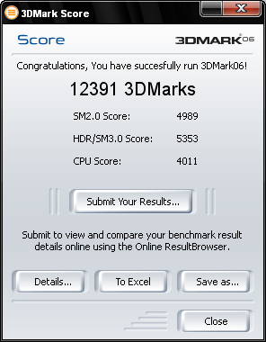 3DMark - ich denke das sollen die 12000 Benchmarkpunkte sein, ist kurioserweise sehr von den Speichertimings abhängig.