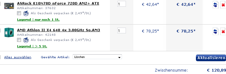 Wenn das alles so klappt, dann komm ich preislich wirklich günstig weg, zumal die Altkomponente ja auch noch etwas wert sein sollte.