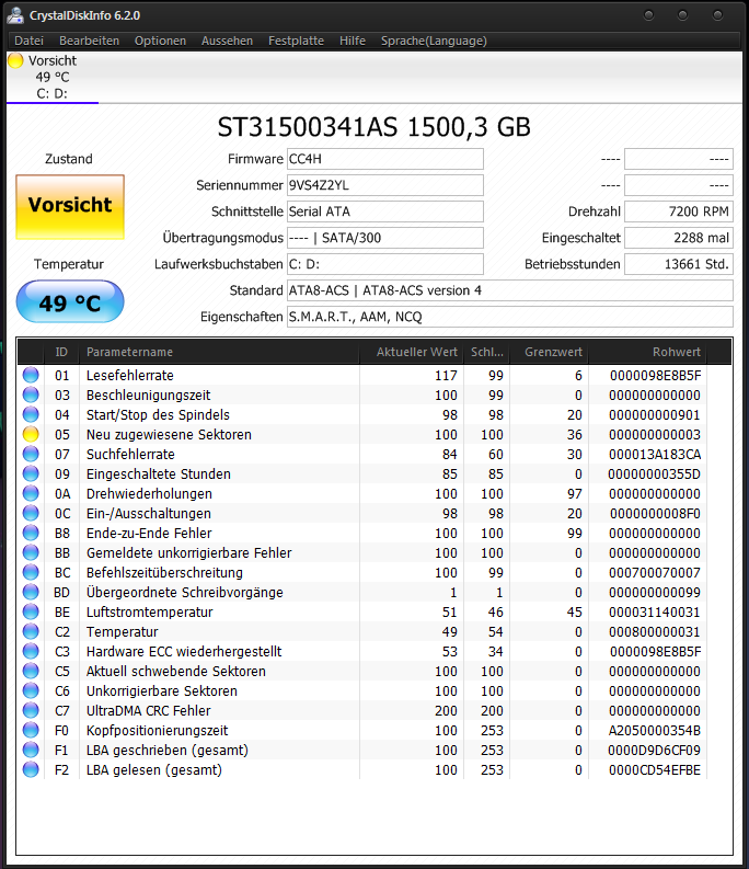 - Speicher: 1,5 TB auf 2 Festplatten, davon ist auf (C