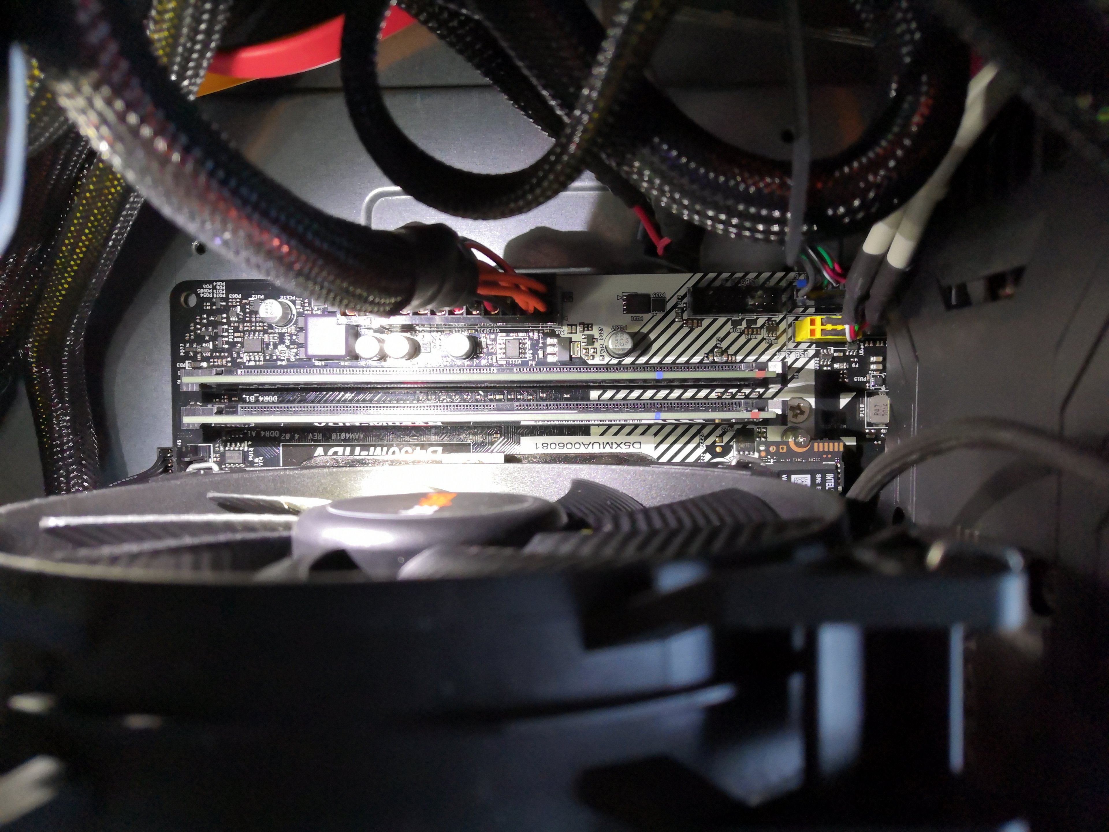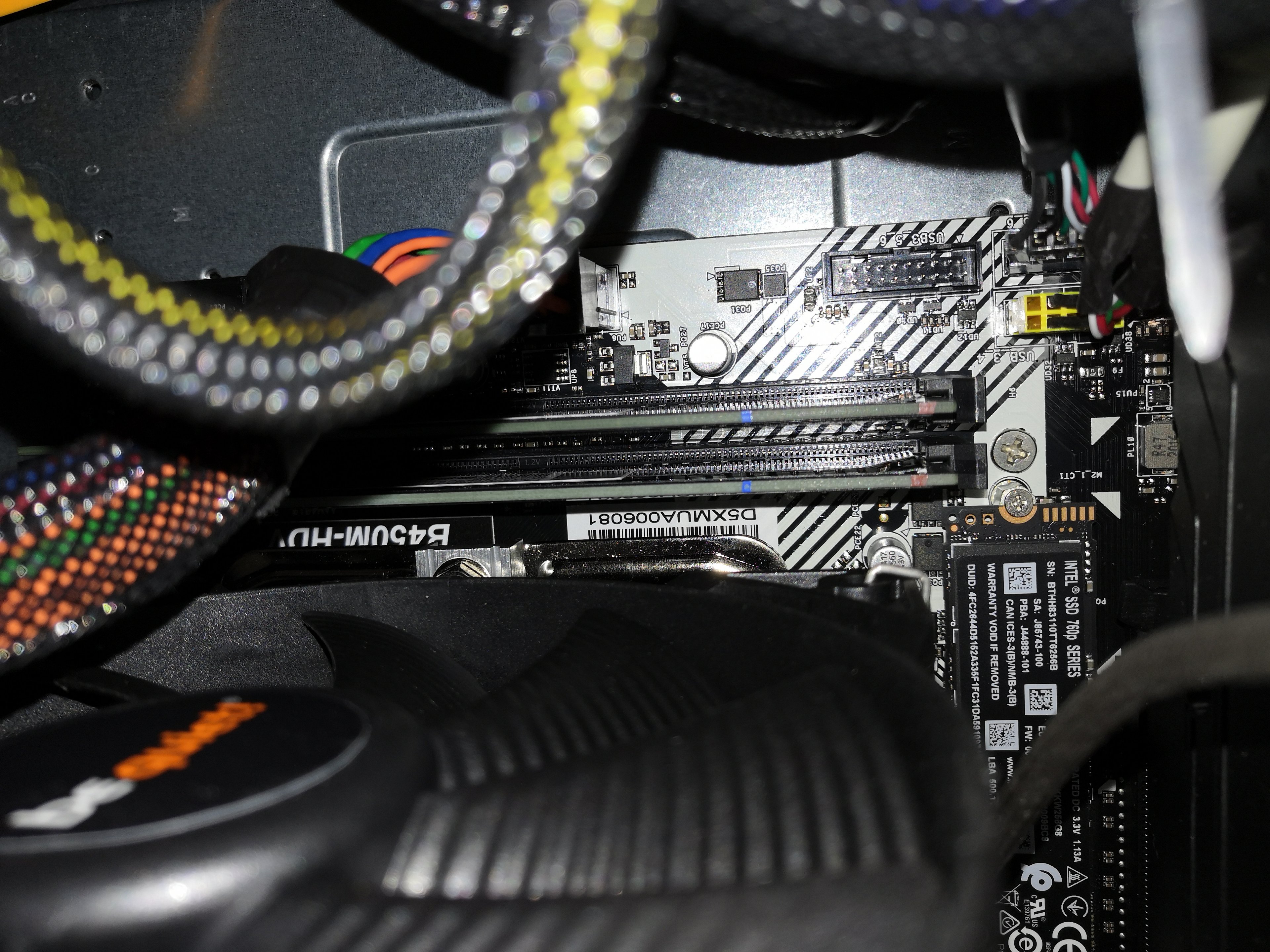 Ich habe schon mal ein paar Fotos gemacht, denke aber, alles richtig gesteckt zu haben, soweit eben möglich. Nur bei den Front-Panel-Pins bin ich mir nicht 100%-ig sicher, aber an der Stelle ist es so eng, dass ich es eh nicht auf einem Foto darstellen kann.
