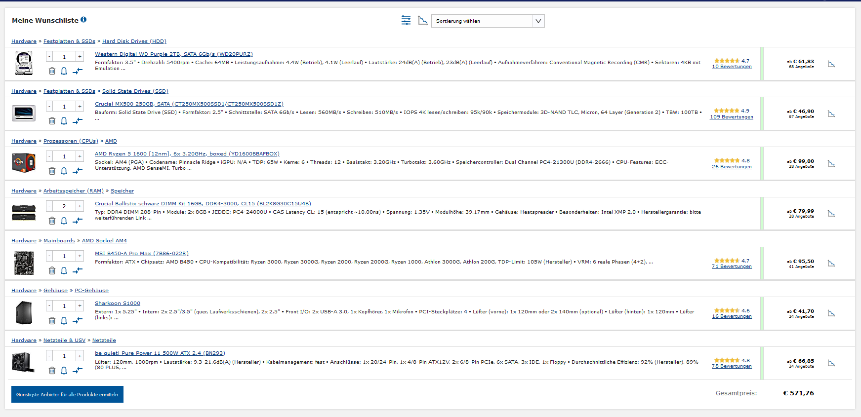 Ich möchte den Computer nach Möglichkeit selber zusammenbauen, grade weil man hier noch etwas sparen kann.
