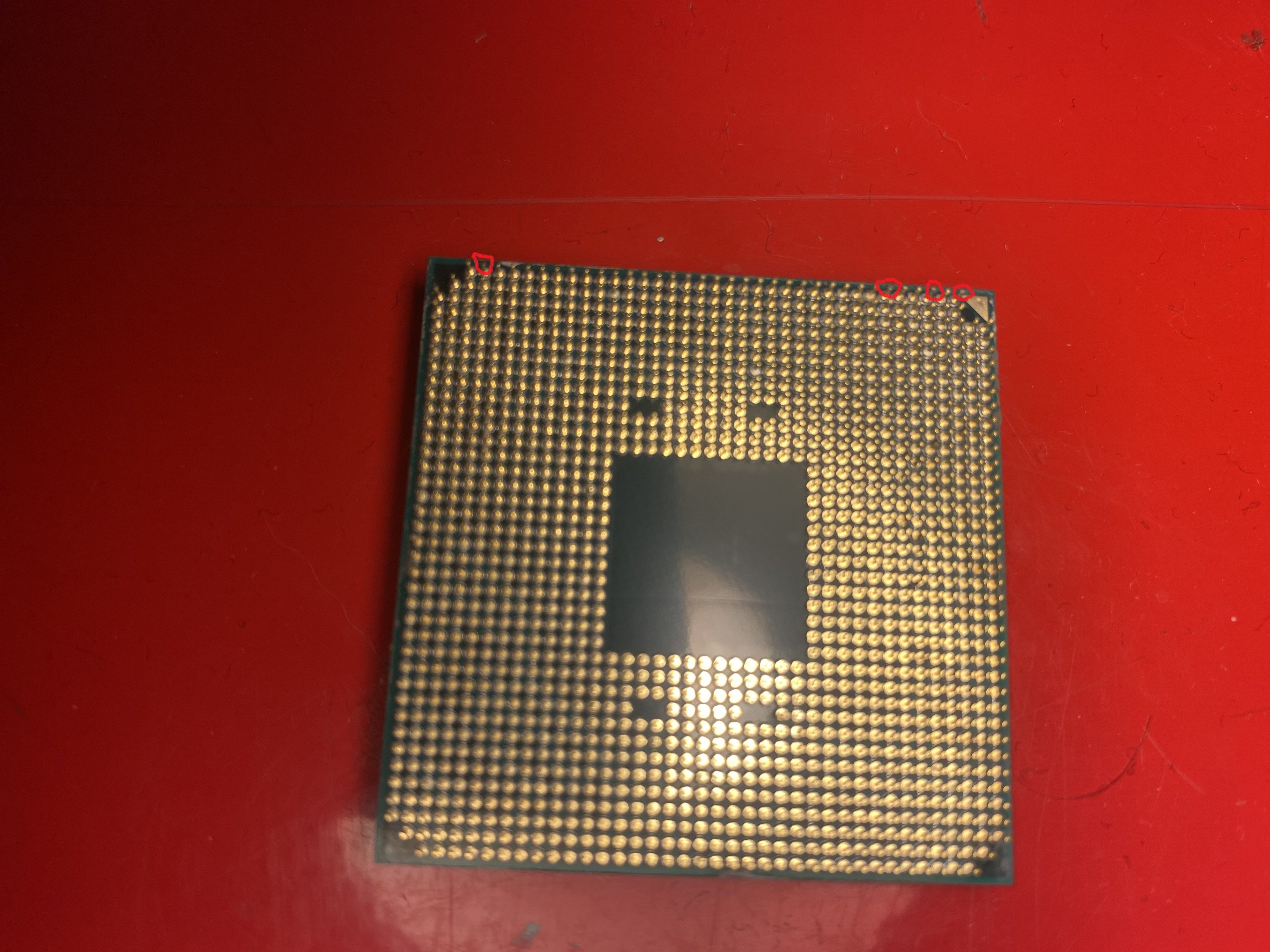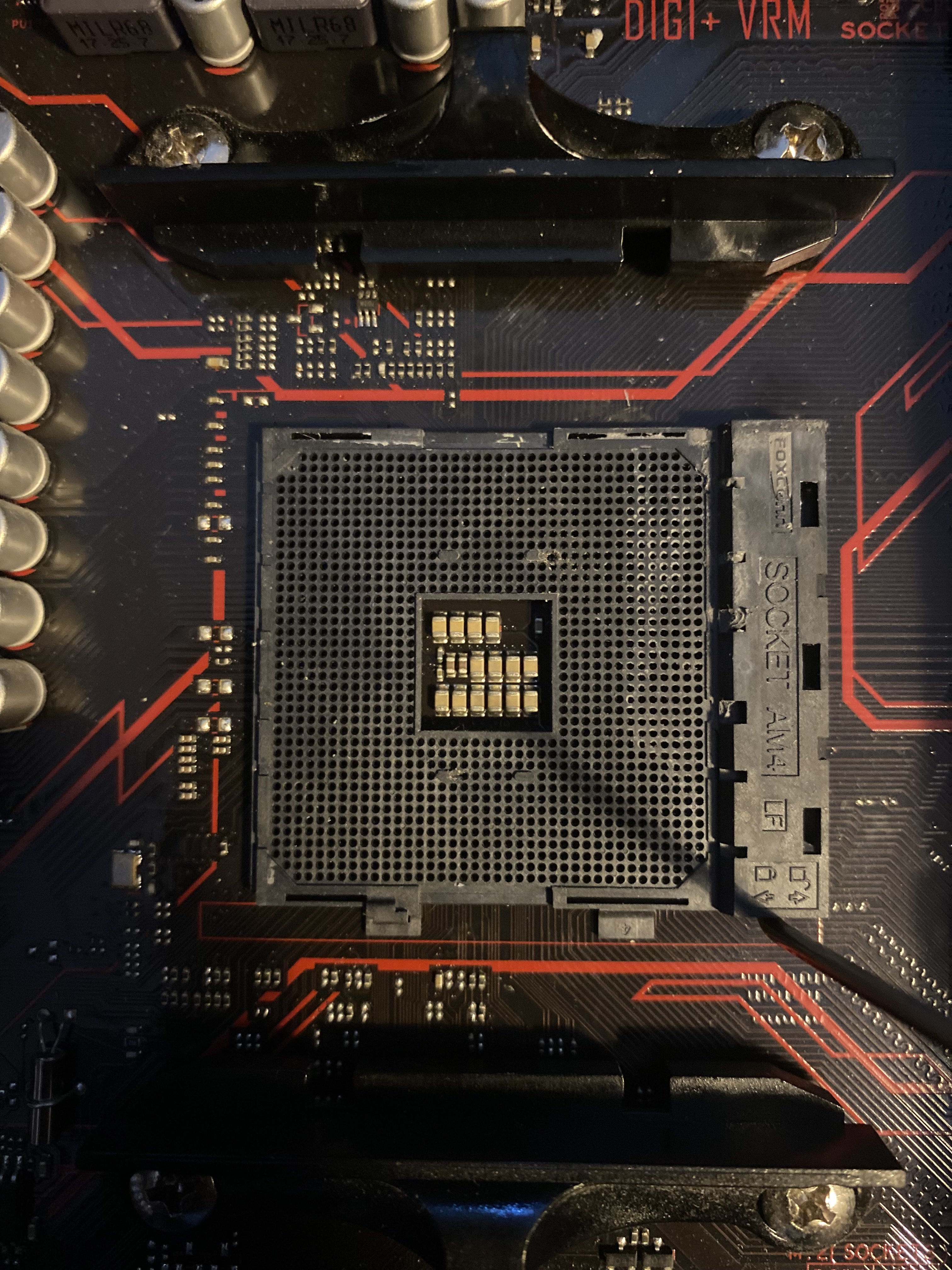 @Andy4 hatte vergessen zu markieren, aber ich seh du hast nen gutes Auge! Genau das waren die Stellen an denen sich leicht die Pins verbogen haben und ich "drücken" musste um die CPU rein zu kriegen. War wohl ziemlich unbedacht und dumm von mir.