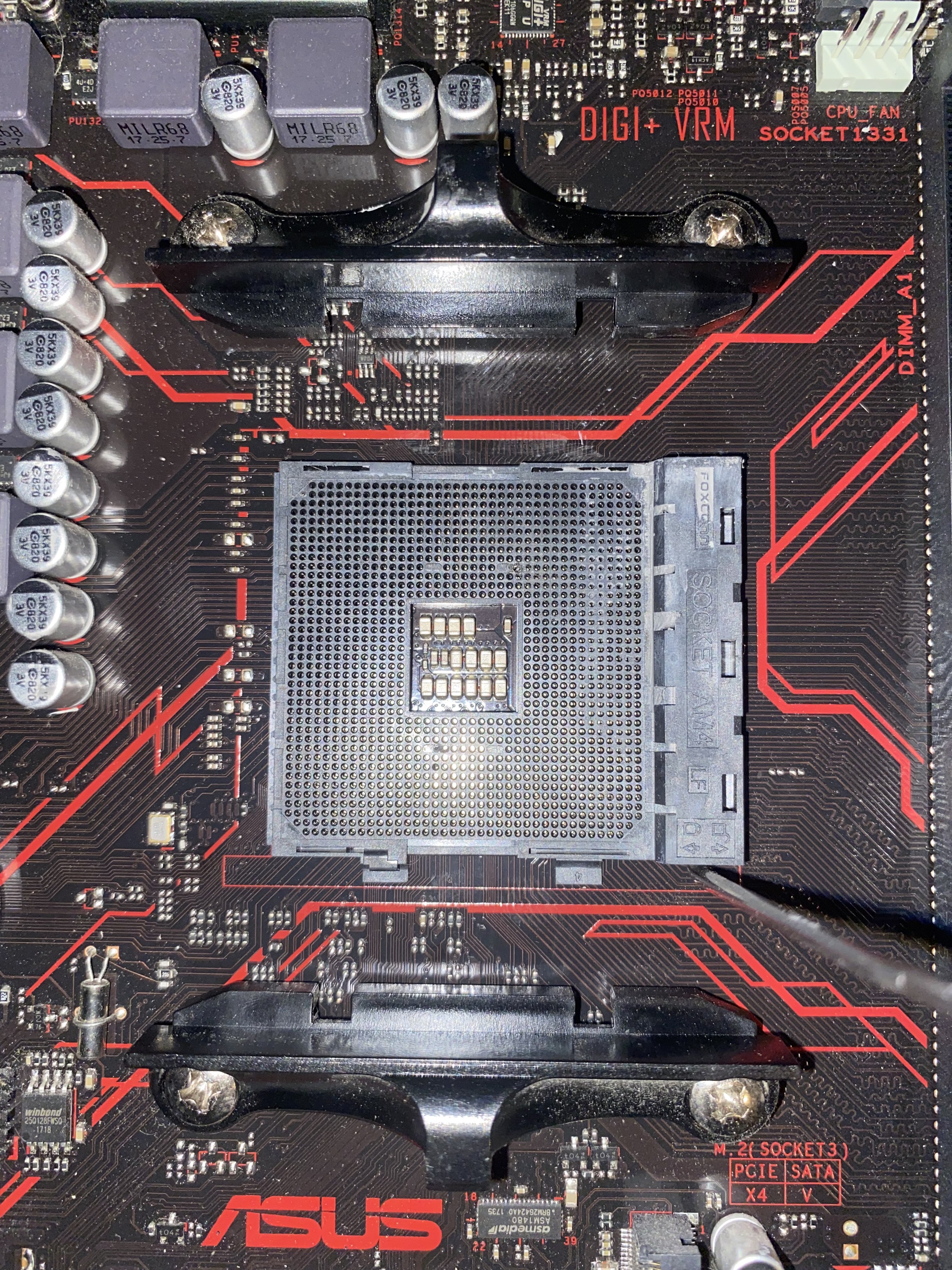 Anbei hier einige Bilder: Ich erkenne an der CPU selber keine verbogenen oder abgebrochenen Pins