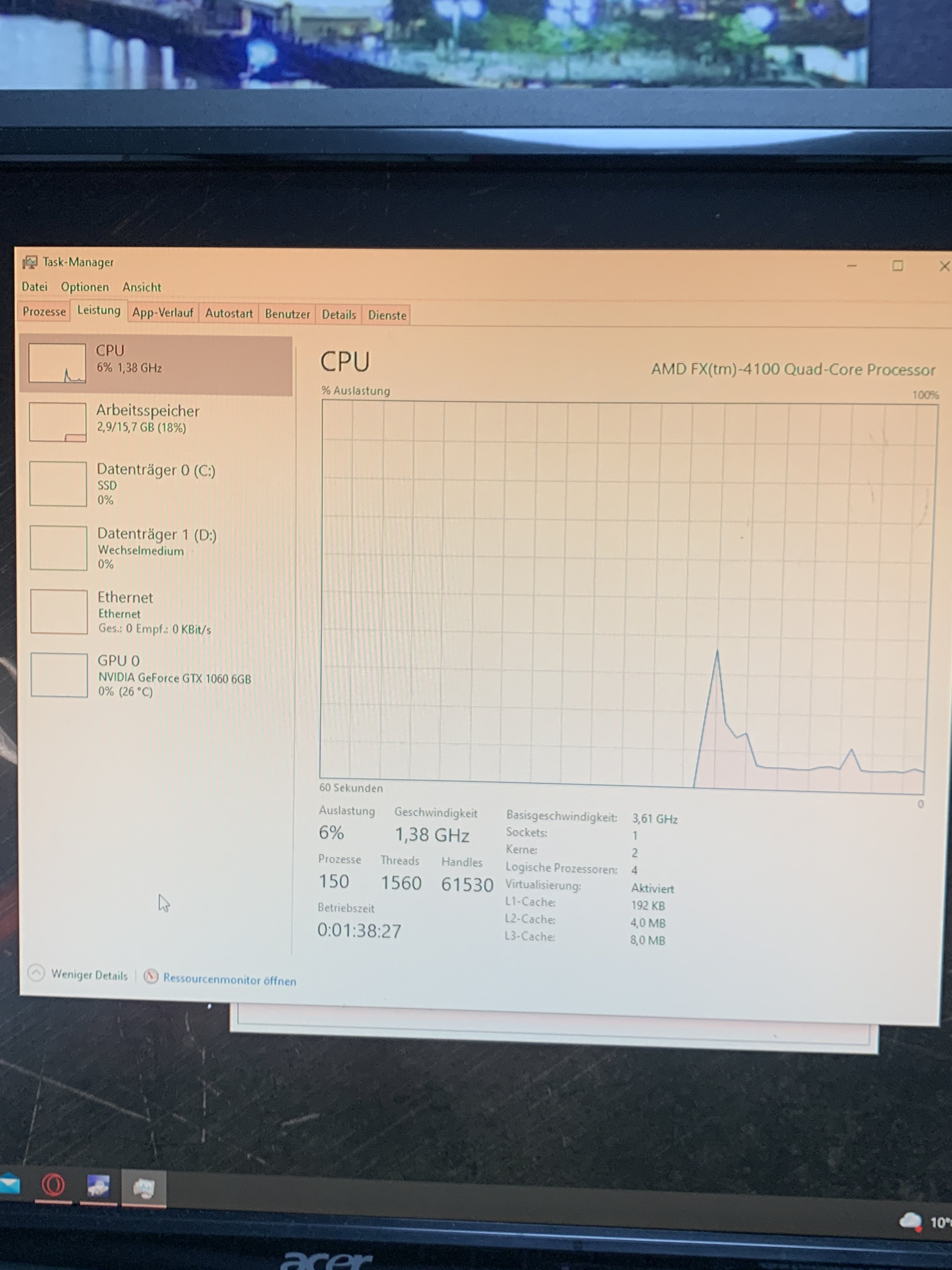 Hatte immer recht wenige Probleme mit meinem PC bis einiges Tages nichts mehr ging und ich lange versucht habe dieses Problem zu fixen, bis ich gestern draufgekommen bin. Es war meine CPU ist defekt war meine FX8350. Ich habe mir gestern eine alte FX4100 für 10€ gekauft um zu testen ob es wirklich die CPU war. Ich war schon richtig glücklich mal ich mir morgen eine neue FX8350 kaufen gehe und jetzt weiß was das Problem ist. Aber wie auch sonst kommt ein Problem nie alleine hab ich jetzt anderer Probleme. Habe denn PC mit der FX4100 mal nach Monate gestartet und musste leider sehen das ich keine 16GB RAM habe sondern nur 11,7GB. Habe einen MemTest gestartet und nach 6 Stunden leider gesehen das es angeblich keine Probleme gibt. Habe die RAM ausgebaut und bisschen sauber gemacht und reingesteckt und plötzlich hatte ich 16GB. Doch ich kann meinen PC nicht nutzen alles hängt brauche mehrer Minuten mal etwas zu starten und alles dauert sehr sehr lange. Also theoretisch nicht nutzbar der PC. Habe mal schnell Counter Strike Source gestartet und musste sehen das ich nur 40 FPS habe, also ist theortisch kein Spiel spielbar. Jetzt weiß ich nicht liegt es am RAM vielleicht ist ja etwas kaputt oder doch an der alten CPU? Ich frage euch jetzt falls wenn ich morgen die FX8350 einbaue es doch nicht klappt und ich immer noch das selbe Problem habe. Ich würde mich über jede Hilfe freuen. MFG