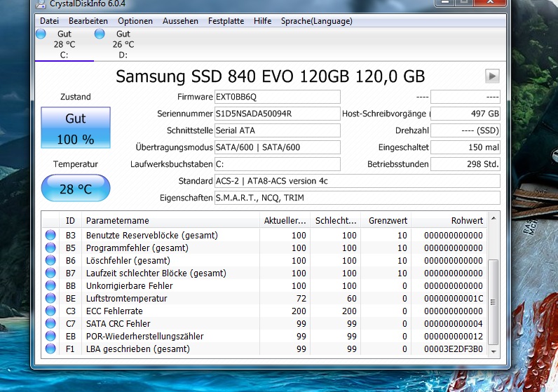 Bitte mache jetzt auch noch mal einen Screenshot von Crystaldiskinfo...