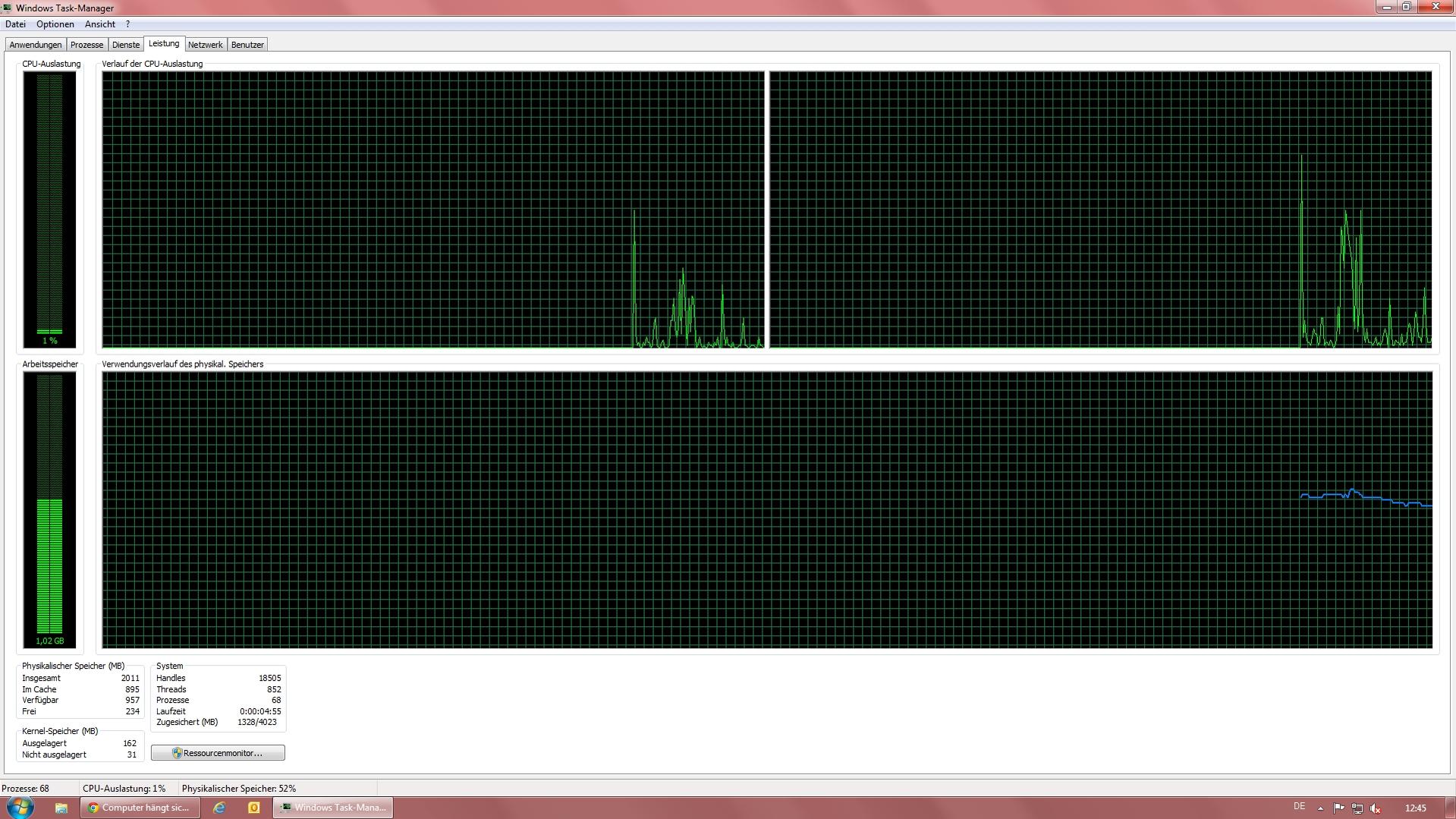 Auch habe ich vorher nichts (bewusst) installiert, was jetzt diese Probleme verursachen könnte. Ich habe den PC auch jetzt mit Druckluft ausgepustet, da ich zunächst auf ein Temperaturproblem getippt habe. Ebenso habe ich Spybot Search & Destroy noch laufen lassen.