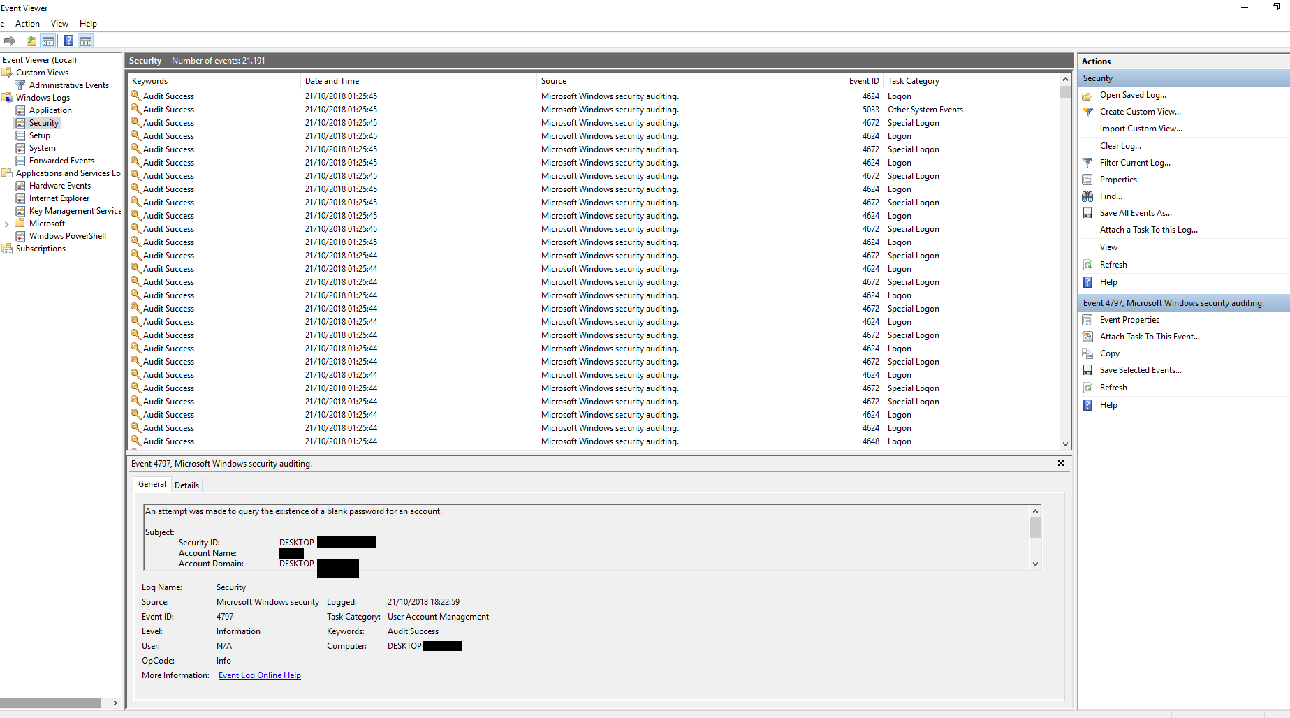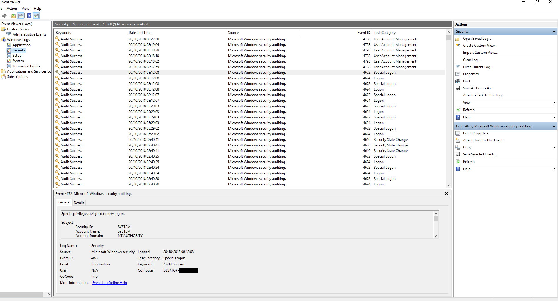 Folgendes: Ich war von gestern morgen bis jetzt außer Haus, komme wieder und der PC läuft. War erst etwas irritiert weil ich meinte ihn in Sleep gesetzt zu haben. Jetzt sehe ich in den Event Logs haufenweise Einträge für den Zeitraum, ebenso auch für Startvorgang und irgendwas mit Explorer. Würde gerne wissen, was ist da genau passiert, war Jemand womöglich am Rechner?