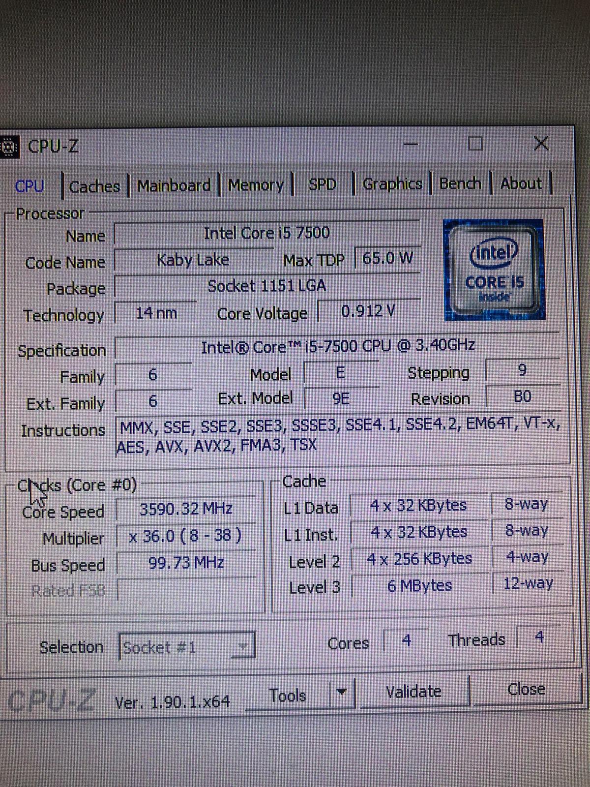 CPU: Intel Core i5-7500 CPU @ 3.40GHz