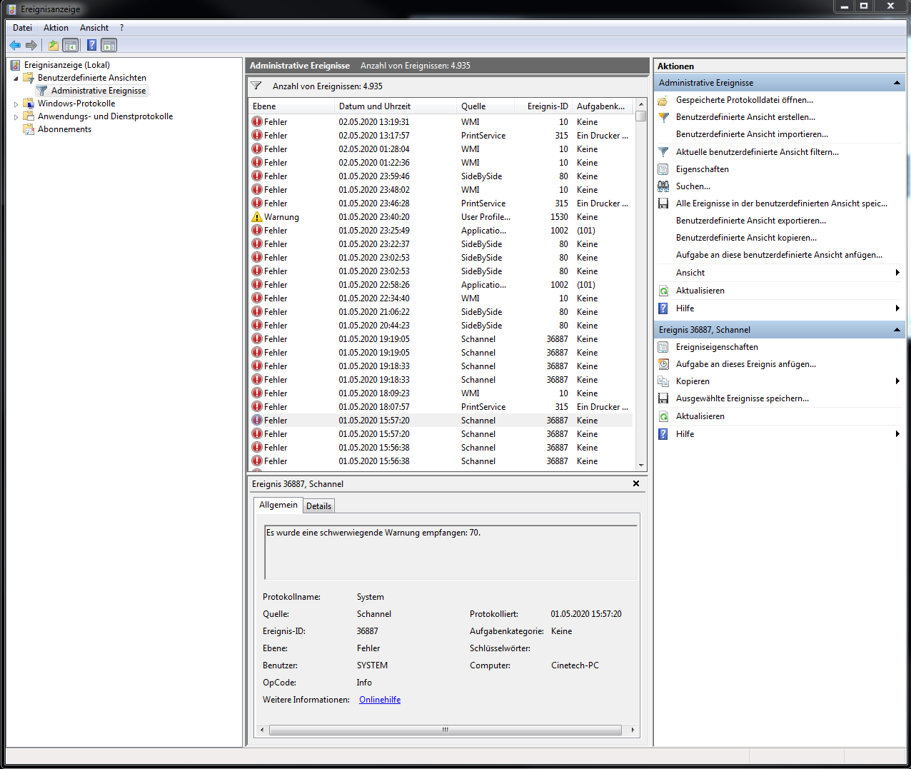 5.) Arbeitsspeicher via Windows-Tool auf Fehler überprüft. Es wurden keine Fehler gefunden.