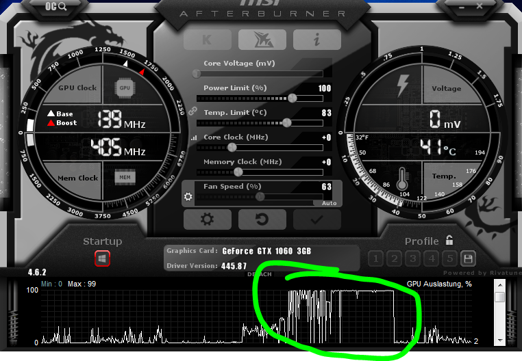 => GPU Temperatur bei ~58°C, maximal bei 63°C