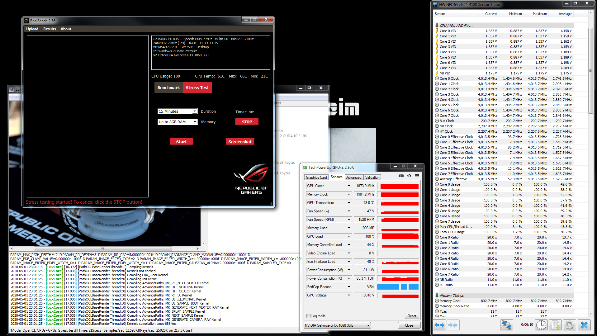 => GPU Temperatur bei ~70-80°C, höchstwert 82°C