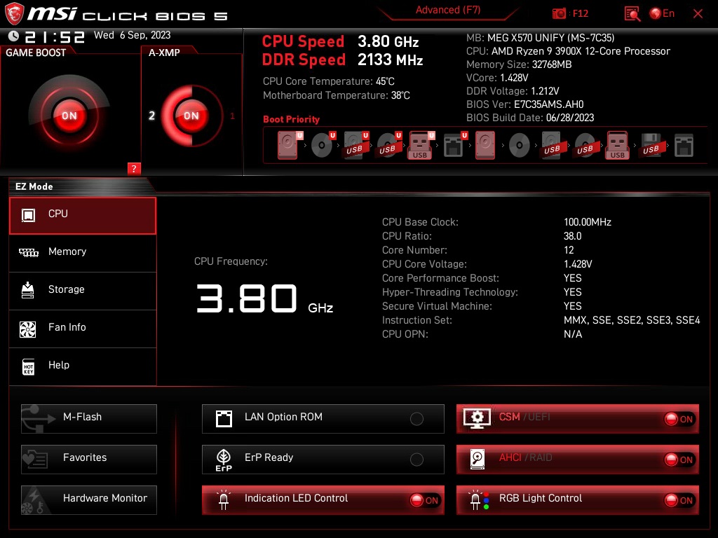 CPU: AMD Ryzen 9 3900x 12-Core Processor 3801 MhZ