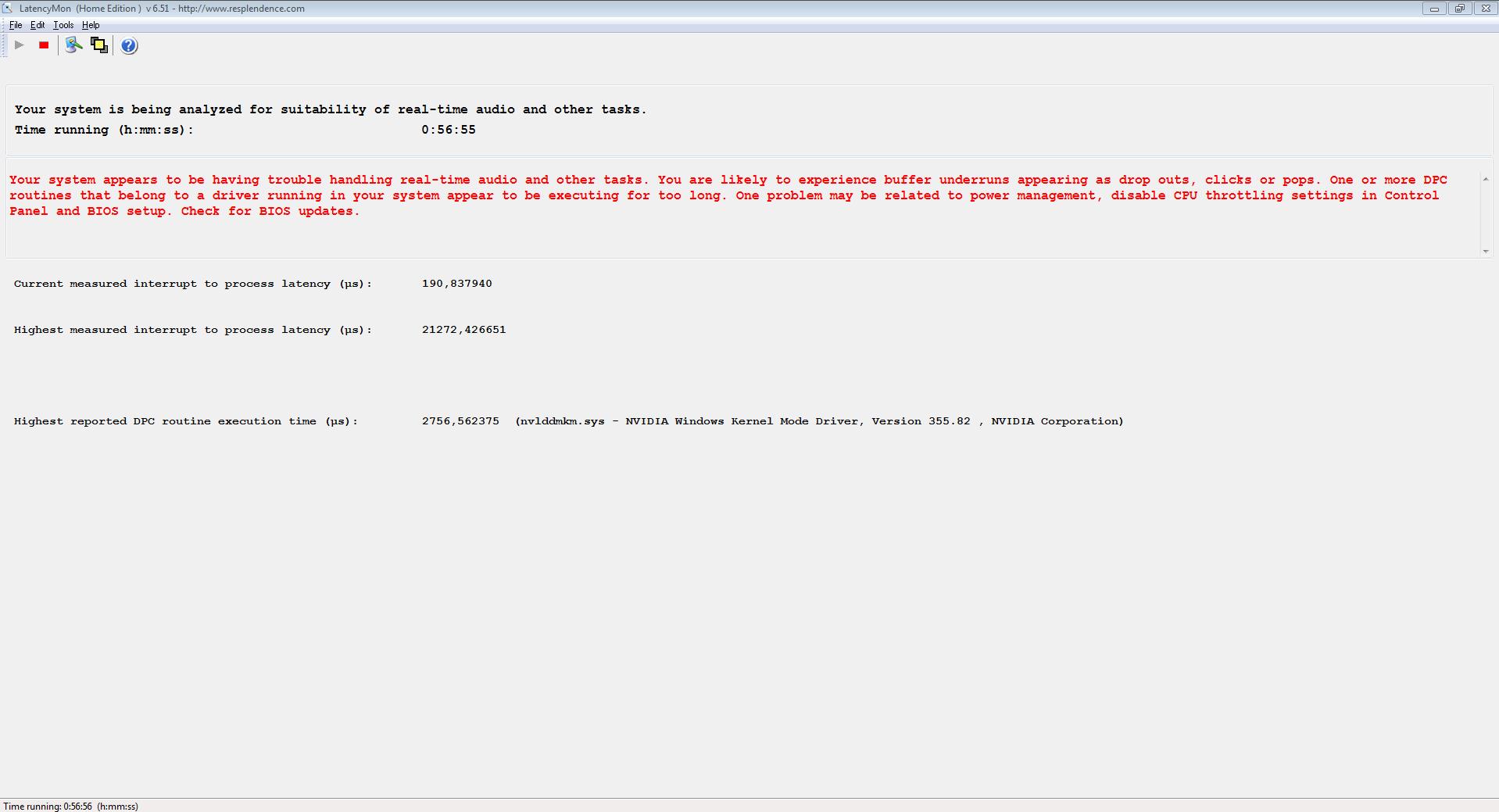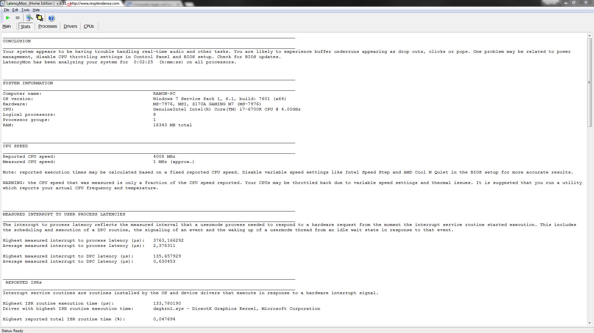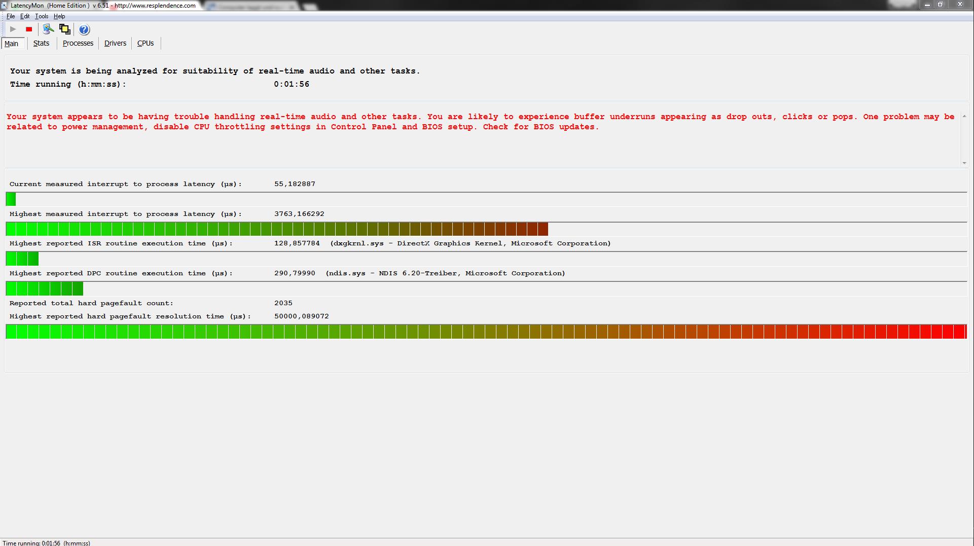 Lass das mal laufen, da findest (nach dem Sortieren, klick in die Tabelle) , die Prozesse/Treiber die die meisten Zeitverluste im System verursachen, denen kann man dann eine Software/Treiber zuordnen.
