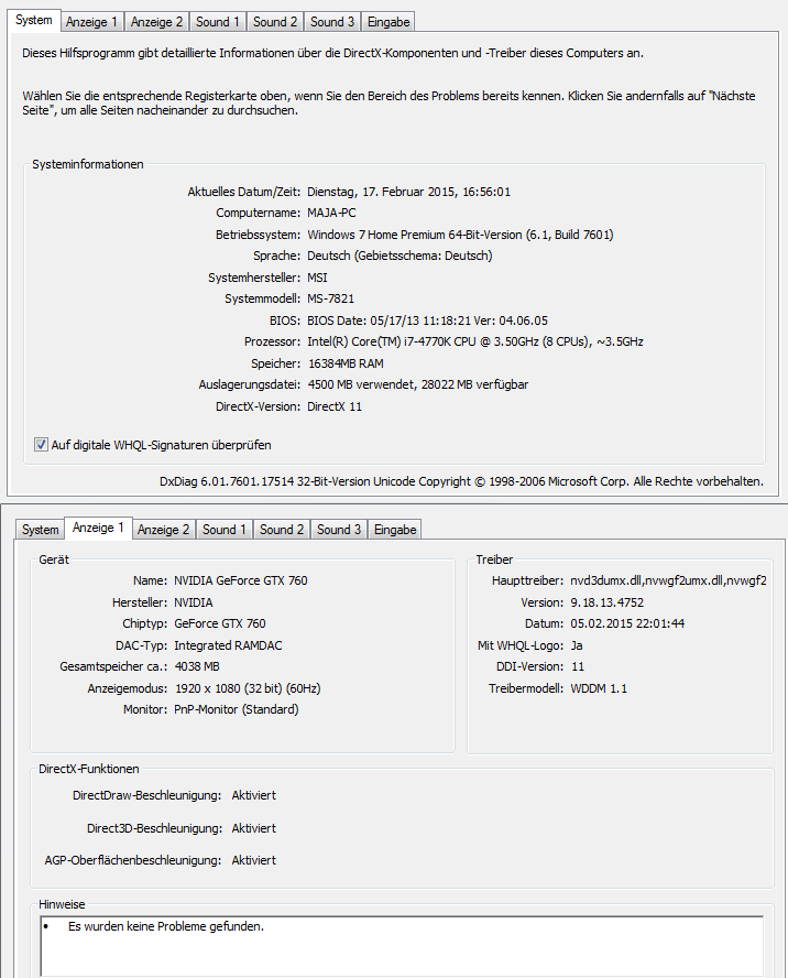 Win 7 hab ich schon mal neu aufgesetzt und alle Treiber neu installiert.