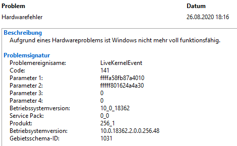 Ich habe schon chkdsk ausgeführt, es hat keine Fehler gefunden, und meinen Grafikkartentreiber aktualisiert, aber das hat auch nichts geholfen. Die Temperaturen an GPU und CPU sind auch ok. Gibt es noch andere mögliche Ursachen dafür als das Netzteil?