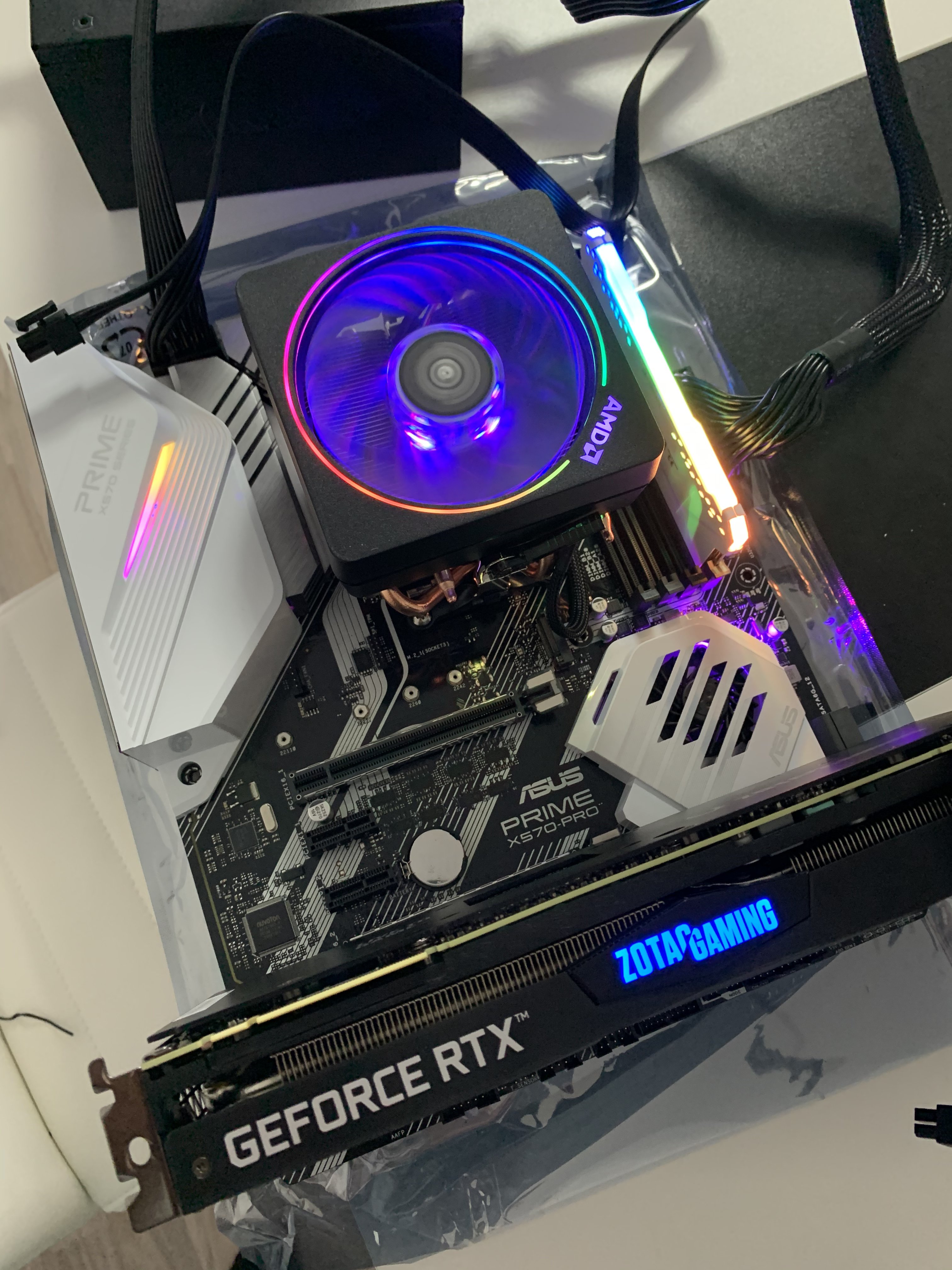 es ist zwar mühsam, aber wenn Du nicht weiterkommst, würde ich alles aus dem Gehäuse ausbauen und einen "Tischaufbau" probiernen, sprich das Board auf eine nicht-leitende Unterlage legen (Karton, dicke Zeitung, pappe etc.) und dann eine Minimalkonfiguration testen: Nur CPU, Kühler (am besten den Boxed), 1 RAM;-Riegel (jeden Riegel einzeln in jeder Bank testen) und GraKa, nichts weiter anschließen.
