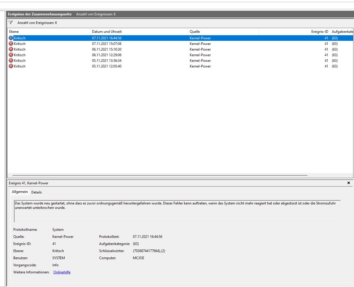 habe seit einigen Tagen einen neuen PC mit zwei ALTEN Festplatten. Jetzt habe ich das Problem, dass mein PC plötzlich herunterfährt und neu bootet. Das besagte Problem hatte ich schon bei Windows 10 und meinem alten PC. Also alles ist neu außer SSD und einer zweiten HDD und dem Monitor. Denkt ihr die SSD ist defekt weil Crystel Disk zeigt GUT an oder könnte es an der Steckerleiste oder Monitor (HDMI Kabel ist auch neu) liegen?