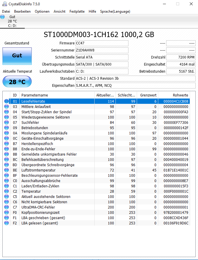 CrystalDiskInfo zeigt an GUT