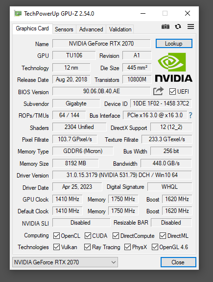 - Grafikkarte: NVIDIA GeForce RTX 2070 Windforce 3X | 8 GB | GDDR6 | 256 bit