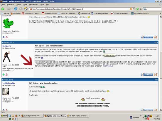 Merksam, die Darstellung im Anhang (gilt für Firefox und auch IE) habe ich nur beim Thema "Feedback zum neuen Unterforum "Treffpunkt" und auch nur auf der letzten Seite.