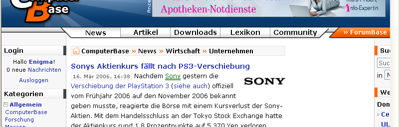 Ich weis - 800x600 ist nicht mehr Stand der Technik - mir is es nur aufgefallen, weil ich am Rechner meines Vaters mal auf computerbase.de vorbeigeschaut hab. Die Startseite sieht gut aus - nur die News werden nicht korrekt dargestellt.