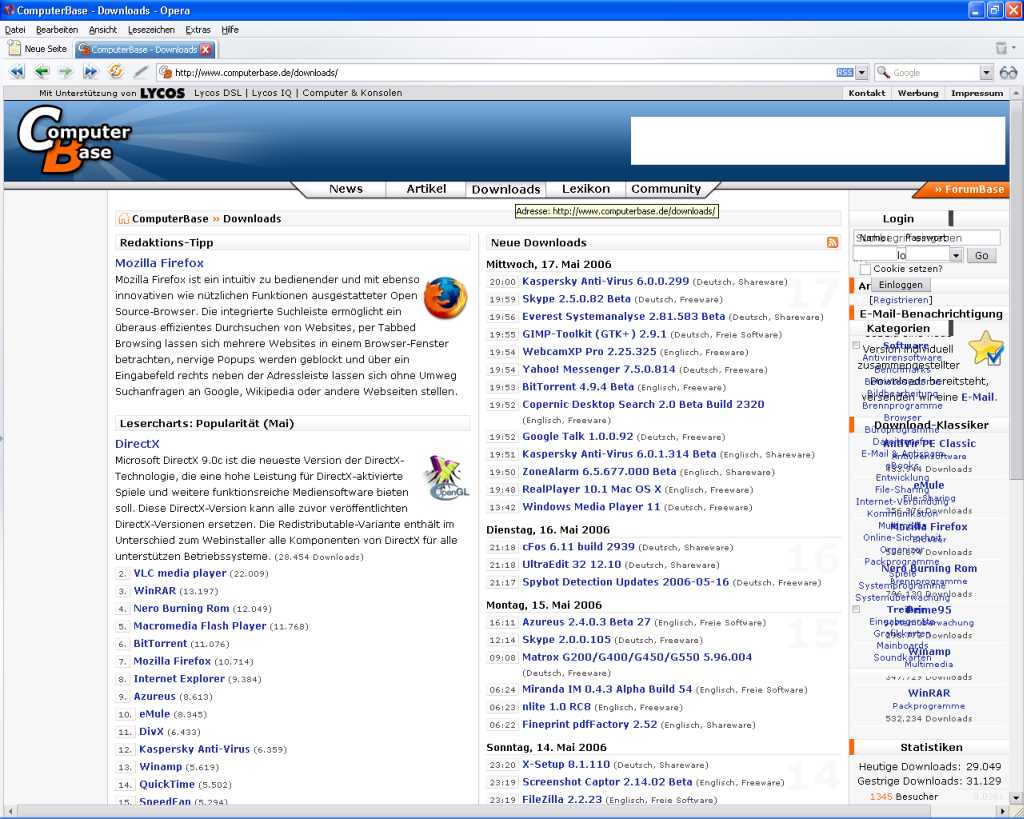 Habe hier seit 3 Tagen ein kleines Darstellungsproblem. Es betrifft nur den Opera und nur die Download-Kategorieanzeige. Cache wurde mehrmals gelöscht, Opera deinstalliert und neu installiert. Auch eine ältere Opera-Version (8.50) brachte keine Besserung. Den gleichen Fehler habe ich gestern auch am Notebook festgestellt.