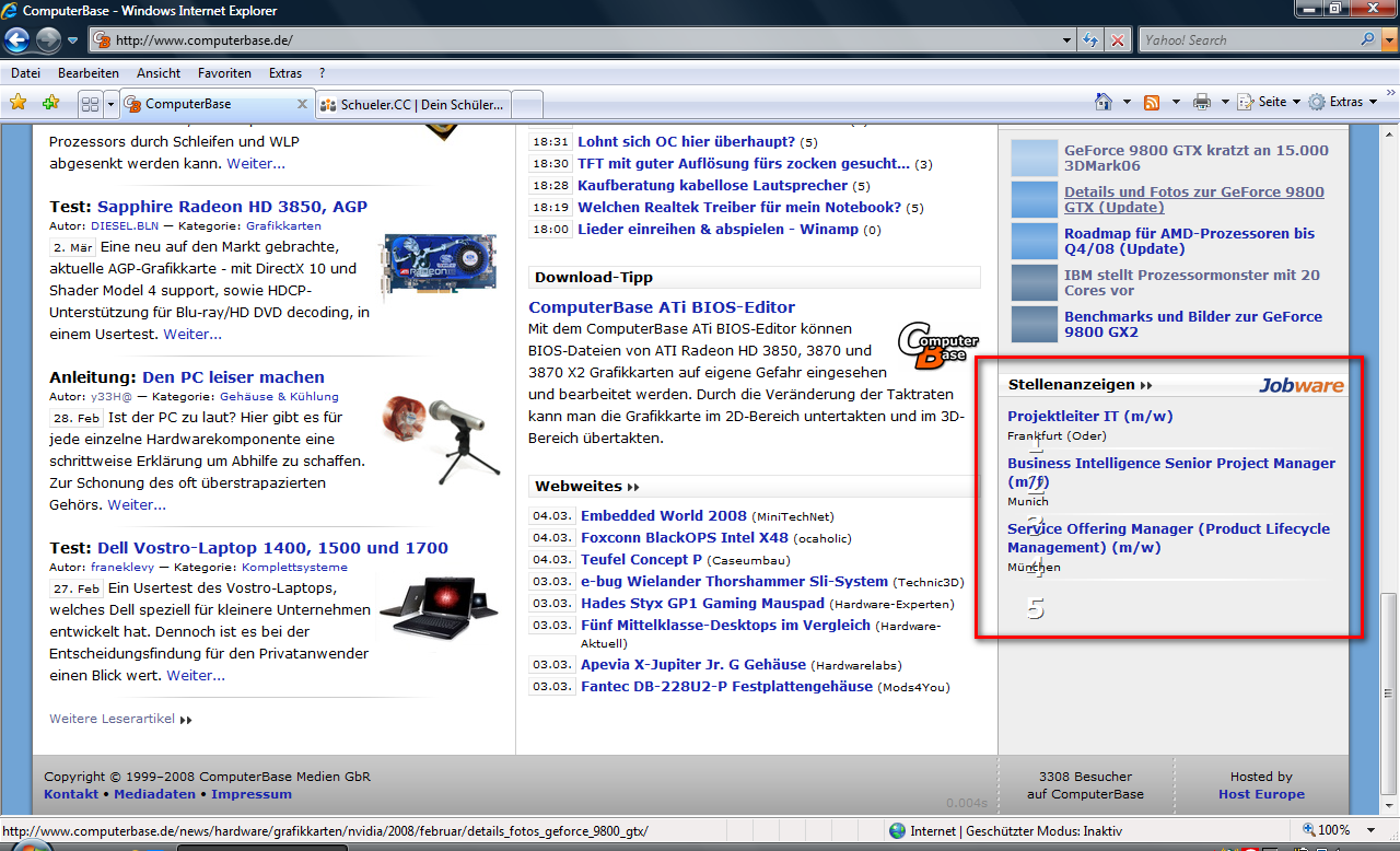 Rechts: fast nichts ausser eben nur die Kategorien und Werbung (das wär ja wohl auch vertikal gegangen, wofür brauch das bisschen ein festes Drittel der Seite?)