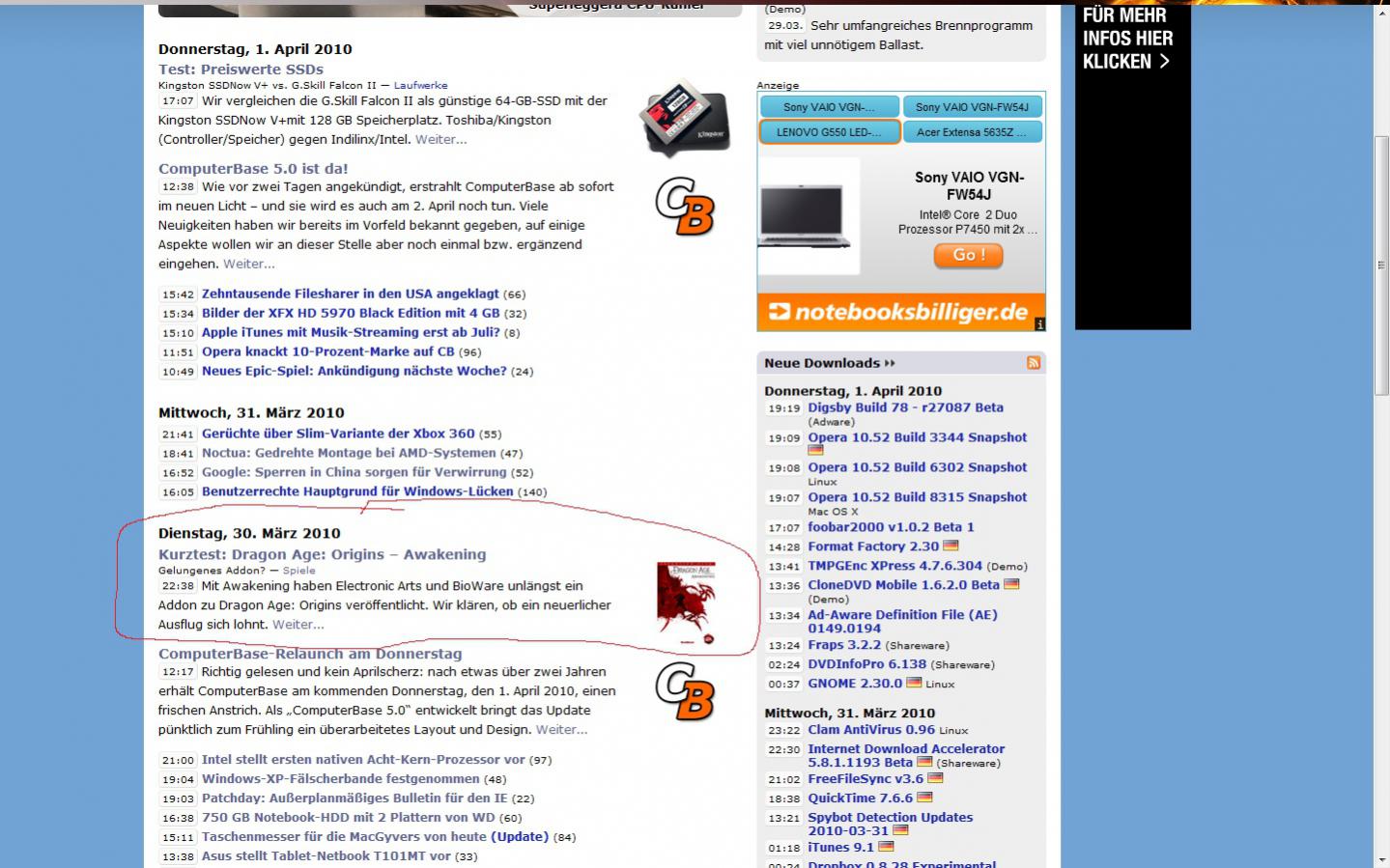 Es ist doch totaler Mist, wenn ich jedes Mal zur Newsübersicht der Woche muss, in der ich "hänge", um so die nächste Neuigkeit zu lesen. Gerade fiel mit noch etwas auf: Wenn man sich z.B. 10 Bilder anschaut, dann wieder zur News wechselt und nun die "Zurück-Taste" der Maus benutzt, landet man natürlich wieder in den Bildern, statt in der News-Übersicht ... d.h. ich muss entweder 11 mal Zurückklicken oder über die Hauptseite die Woche suchen und dann weiter lesen, wo ich gerade war.