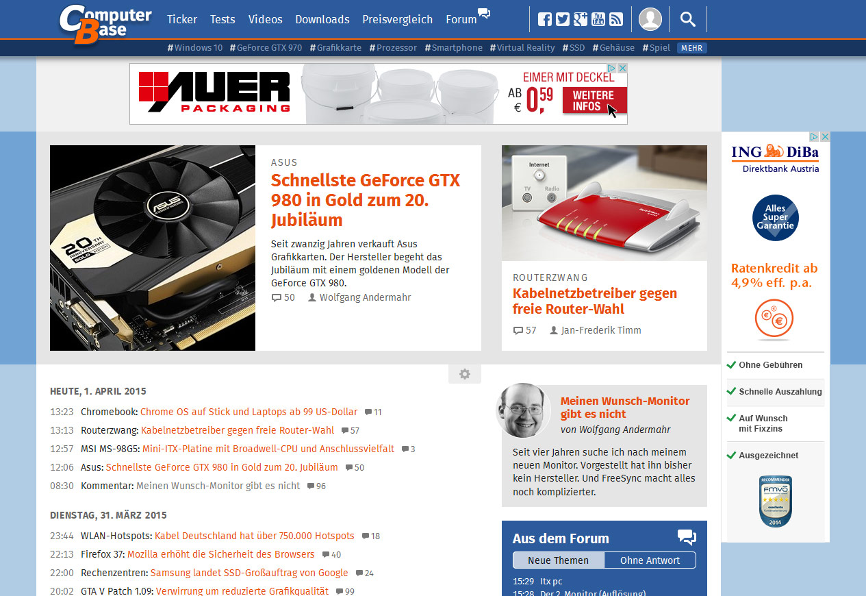 ich weiß ja nicht wie bei dir das forum aussieht, aber ich sehe hier jeden post über eine breite von 2000px. das ist nicht in 3x 666px geteilt. und jetzt stell dir vor, ich verrutsche nicht in den zeilen, ich komme klar. und andere tun es auch. komischerweise ist das aber das argument, warum cb ja nicht breiter als 1000px sein darf, weil dann die zeilen so breit sind. nebenbei bemerkt, von 1000px kann keine rede sein. nehmen wir mal fullhd, du weißt schon, die auflösung die seit 9 jahren standard ist. damit sieht cb so aus (als beispiel die anzeige eines artikels):