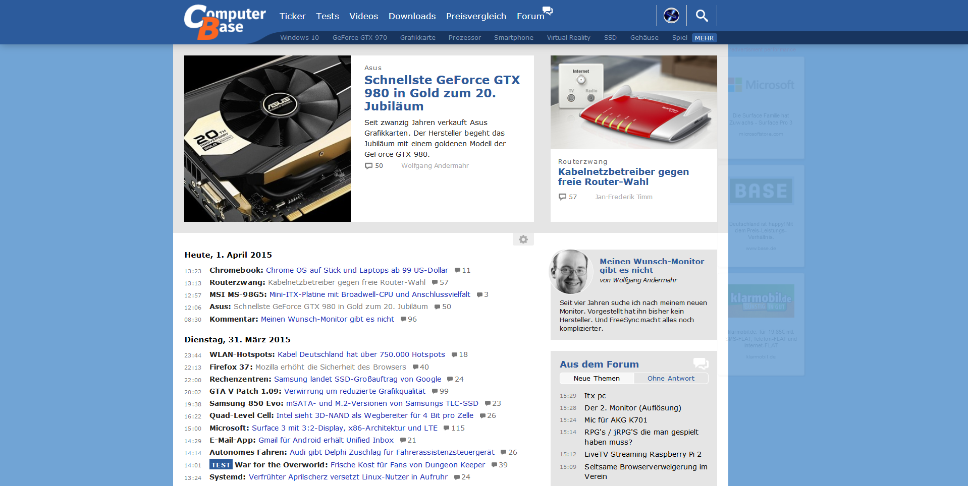 Irgendein findiger User kann ja mal probieren, die Höhe des Banners mit den zwei Artikel-Teasern auf der Hauptseite um 100px zu verringern. Das Ding ist einfach viel zu fett für so wenig Info und verschenkt deswegen sinnlos viel Platz.