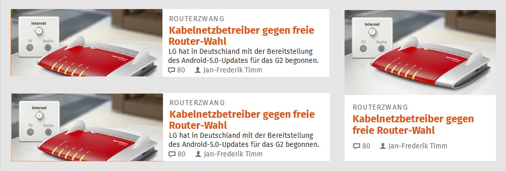 Die Thumbnails von den zwei News könnten natürlich auch quadratisch sein, damit mehr Platz für den Einleitungstext vorhanden ist.