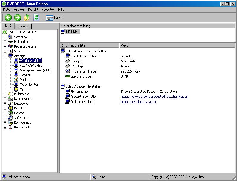 SiS 6326 8 MB SGRAM AGP 1x (Anzahl: 1)
