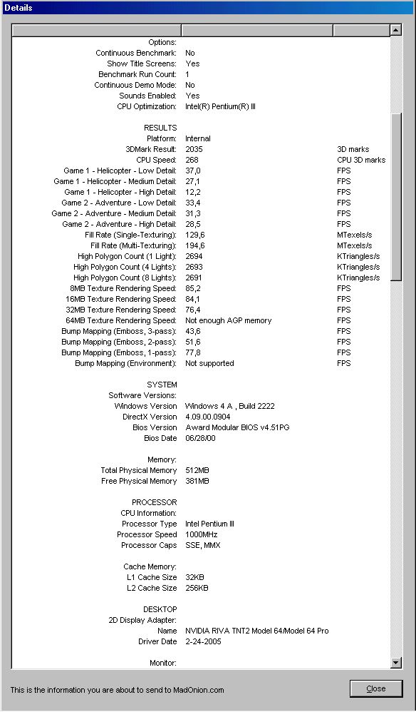 - optional: 3DMark 2001 SE-Durchgang mit Screenshot (Download-Link)