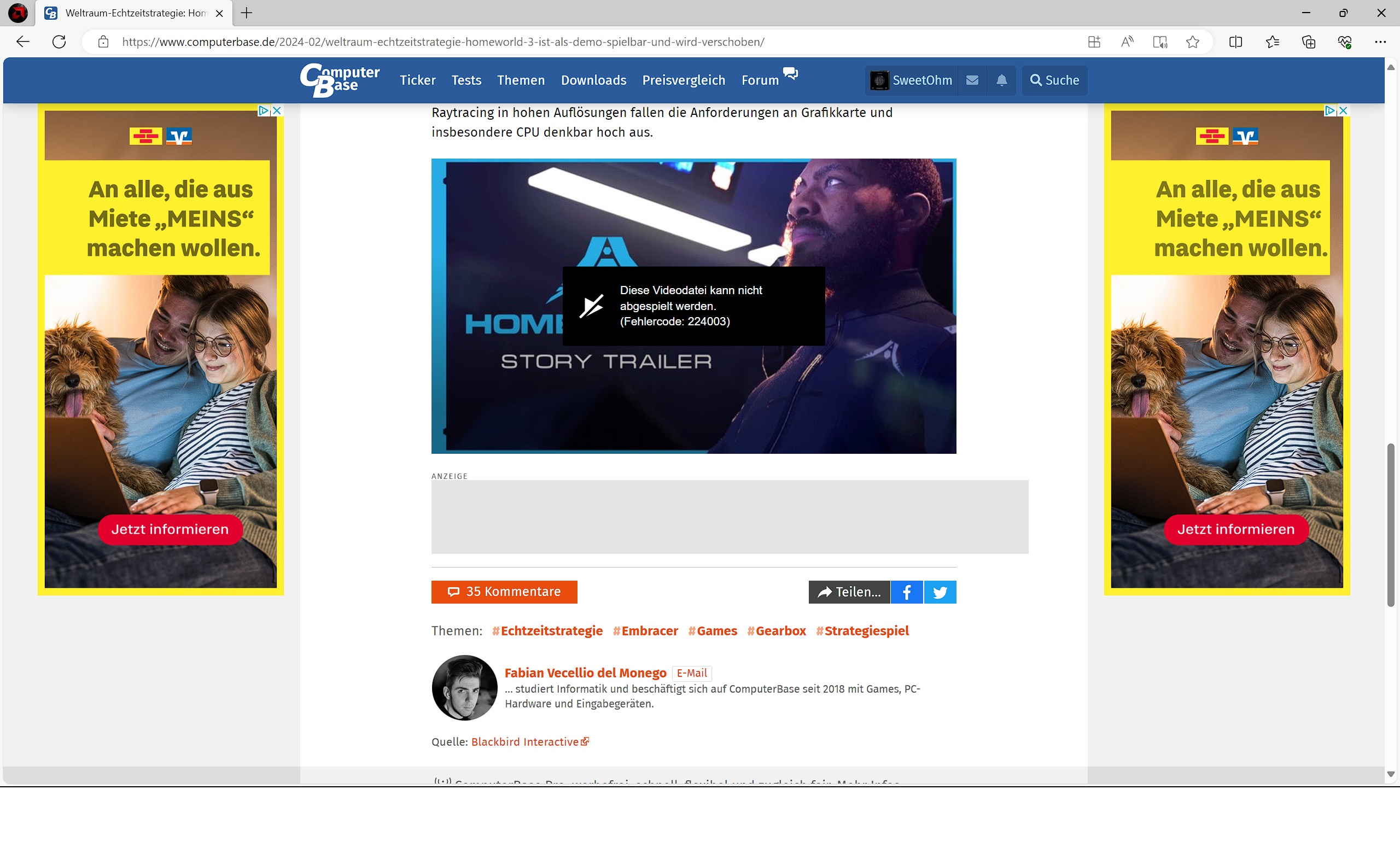 Frage : liegt es an mir, bzw. an irgendwelchen Einstellungen, dass die "eingebetteten" Videos in einer NEWS