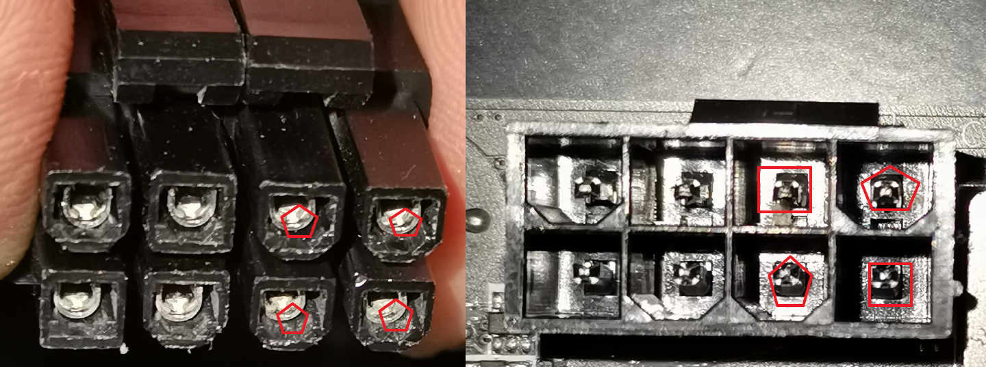 Die Rundungen und Ecken müssen passen, sonst könntest du einen Kurzschluss verursachen. Auf keinen Fall dem 6+2 Pin Stecker für die GPU in den CPU Stromanschluss quetschen.