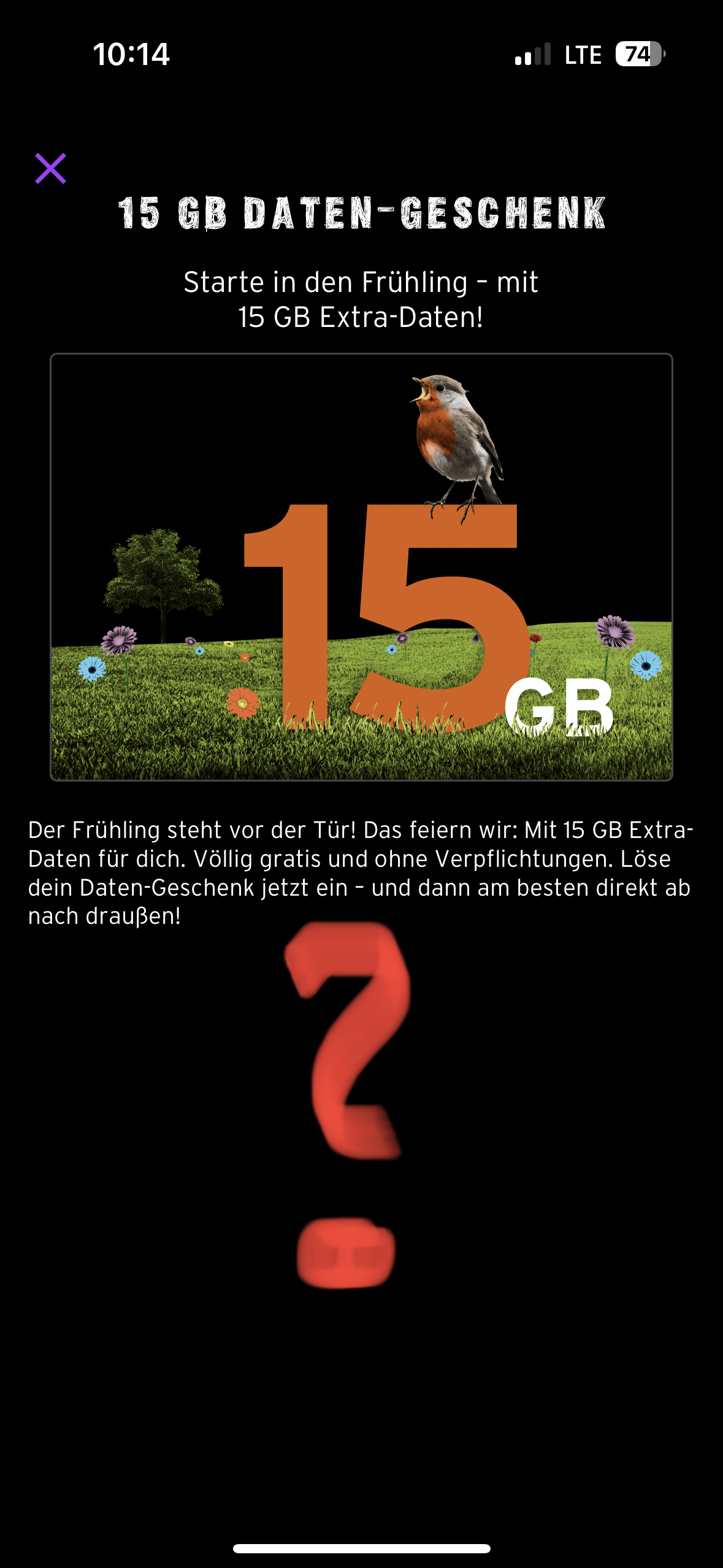 Habe eben gesehen, dass Congstar für den Monat März 15GB verschenkt - jedoch bin ich entweder zu blöd oder Congstar hat den Einlöse-Button unfassbar gut versteckt...