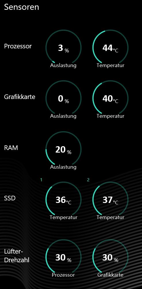 In meinem Profil im ausbalancierten Modus sollte auf 20% geschaltet werden, allerdings bleibt alles bei 30% bzw. schaltet sich auch nicht ab trotz guter Temperaturen, bis auf den CPU Lüfter ab und zu, wenn es dem Gerät bzw. der Steuerung mal danach ist: