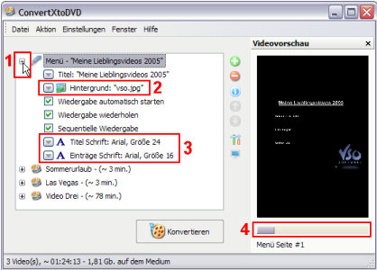 Nun habe ich erstmal eine Urlaubspräsentation darin umgewandelt nebst Menü mit eigenem Hintergrundbild und Mp3 als Sound für das Menü lässt sich auch einfügen unter Hintergrundsound. Aber dieser Track wird dann im Menü stets die ersten 10 Sekunden und das in Endlosschleife gespielt...