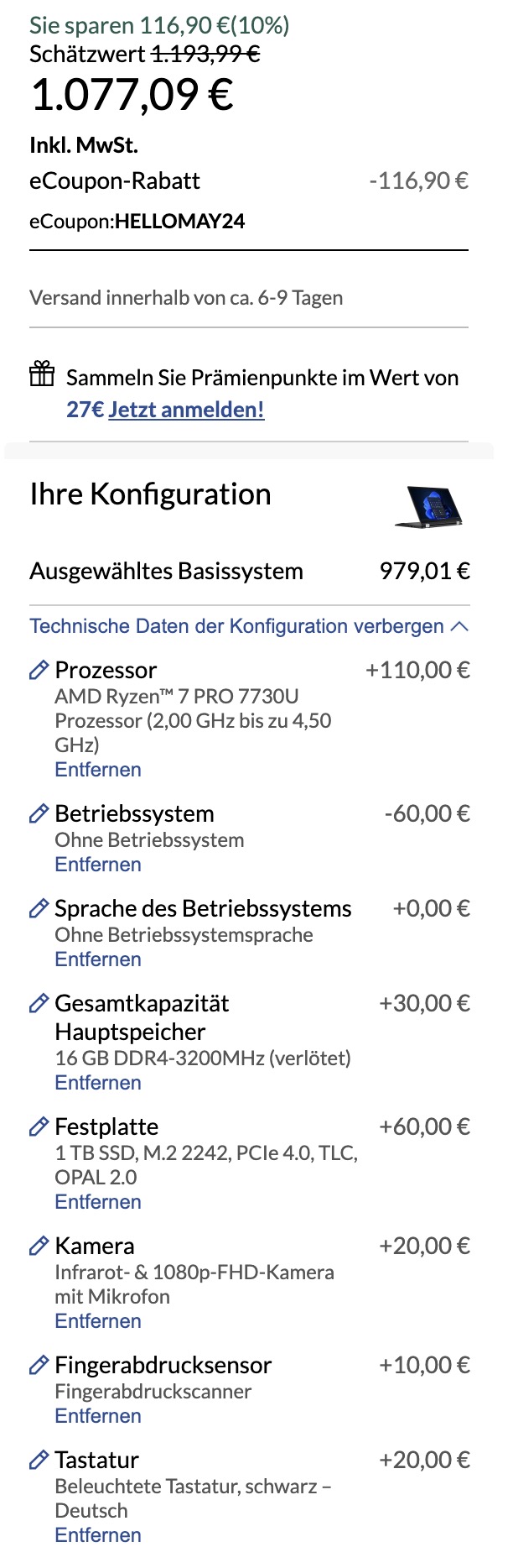 - Lenovo ThinkPad L13 Yoga Gen4 mit AMD Ryzen 7 PRO 7730U, 1TB SSD und 16GB RAM - 1193,99€ (Eigene Konfiguration, s. Anhang)