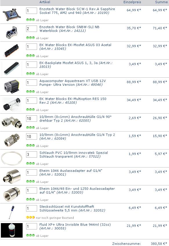 Bei den restlichen Komponenten von Aquatuning warte ich ich bei der Bestellung noch bis morgen, da ich dann erst weiß, ob ich den EVGA Graka-Kühler bekomme oder nicht. Denn sonst muss ich mir einen bei Aqua aussuchen, um die Bestellung zu komplettieren....