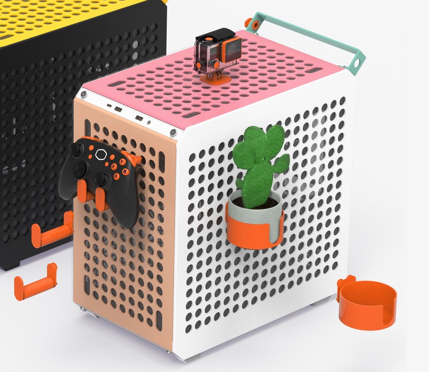 Weitere Add-Ons sollen sich mit einem 3D-Drucker herstellen lassen. Cooler Master stellt wie bei anderen Gehäusen Vorlagen für einen Headset-Halter, einen Pflanzenhalter und eine Halterung für eine Go-Pro-Kamera bereit.