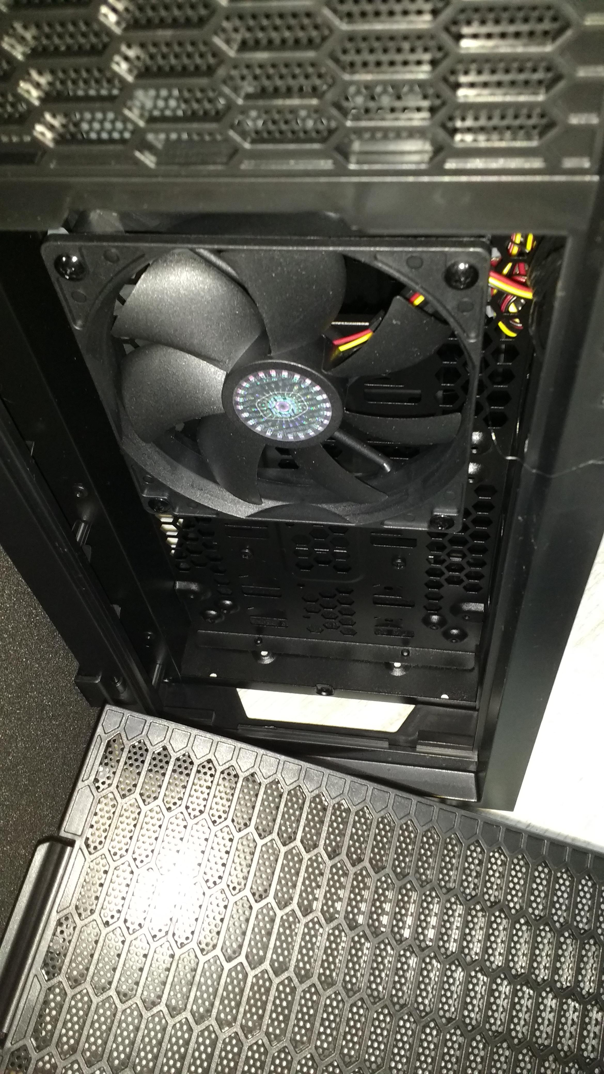 Der Einzige Grund, weswegen Frischluft angezogen werden kann, ist dann noch der hintere Lüfer, der einen Unterdruck aufbaut. Aber auch hier verfügt das Gehäuse über so viele Öffnungen ohne Filter, dass mir diese (ohnehin sehr grobmaschigen) Staubfilter ziemlich witzlos erscheinen.
