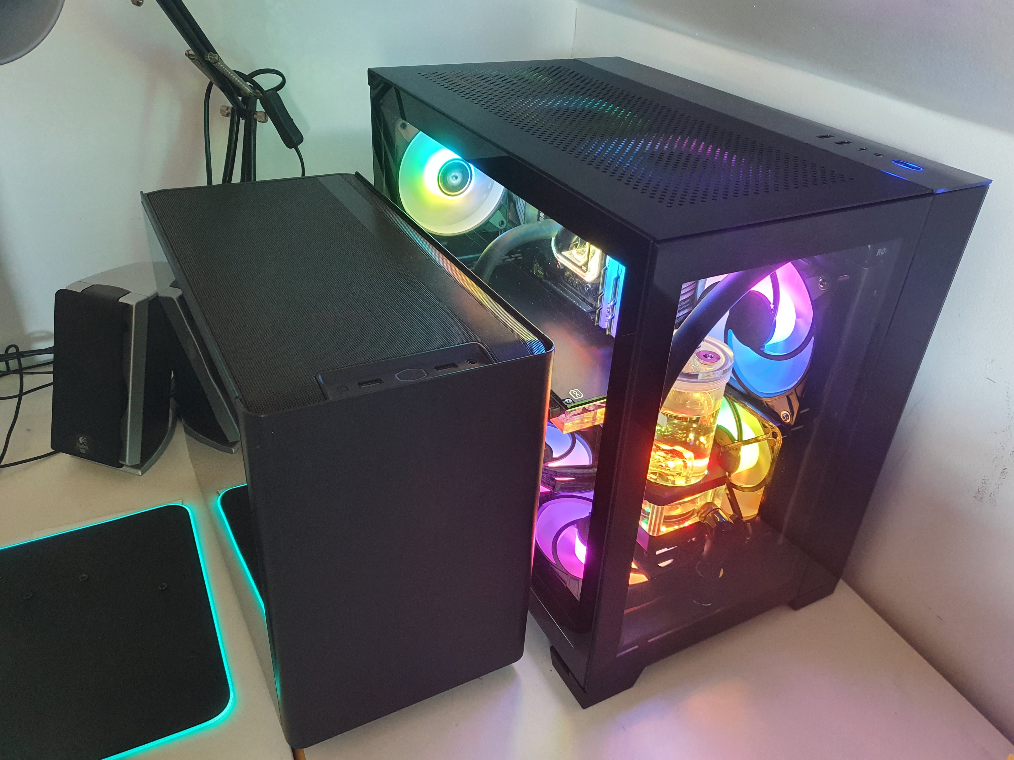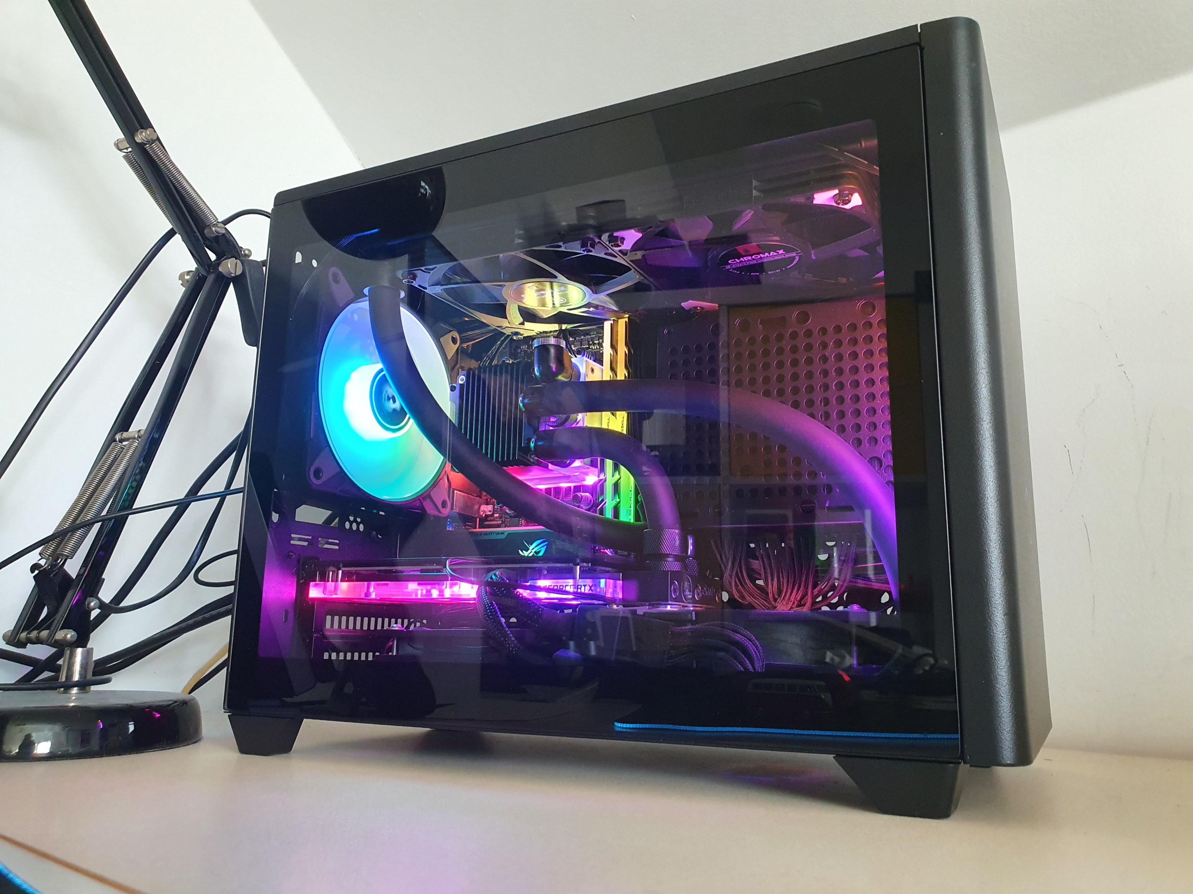 ). Es handelt sich dabei um ein NR200P, in welches ich eine Wasserkühlung mit zwei 240er Radiatoren gequetscht habe.