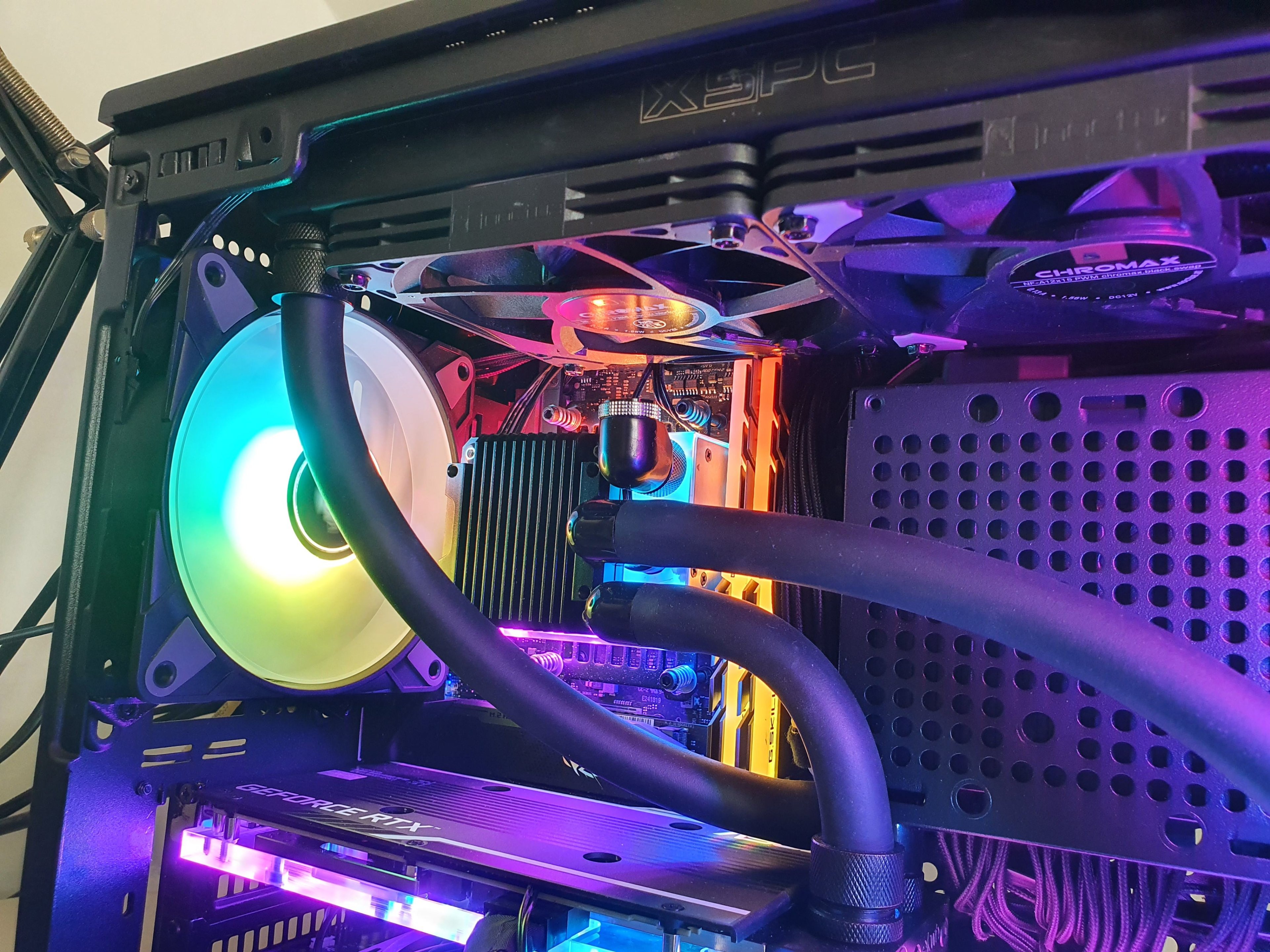 - Radiator oben: XSPC TX240 Cross mit 2 x Noctua A12x15
