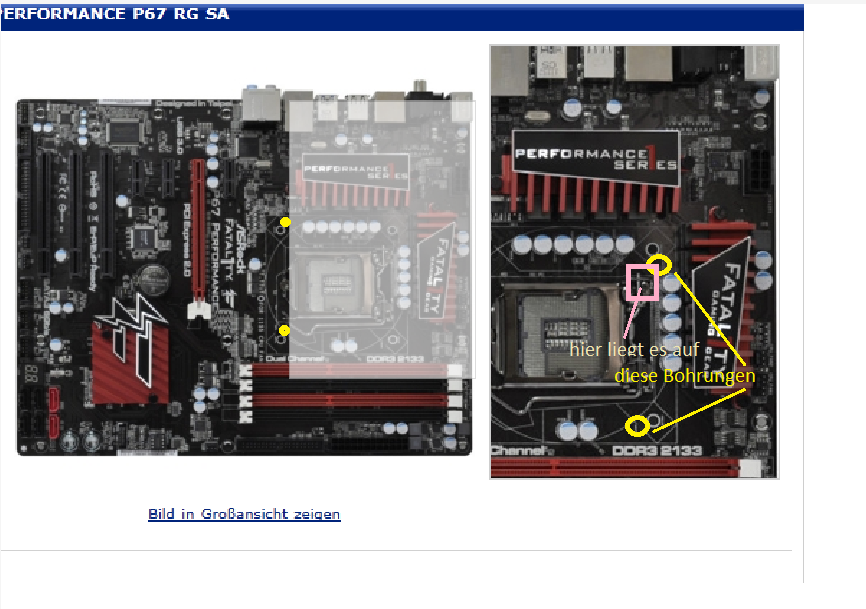 "Du musst erst die Halterung für Intelboards (die mit den verstellbaren Schrauben) am Kühler befestigen,die mittlere Einstellung ist für 1155er Boards"