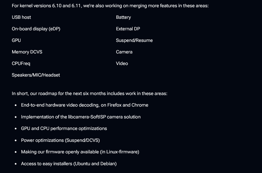Machen sie gewissermaßen, es gibt ein Modifiziertes Debian mit allen Patches und Co die noch auf Upstream warten für die Geräte. Aber ja eine Distro Ala SteamOS für diese Geräte, mit denen es die dann auch zu kaufen gibt hätte schon etwas. (z.B. Mit komplett eingerichtete und etwas aufgebohrtem Waydroid, das meiste was die Leute auf Linux vermissen gibt es ja bereits unter Android)