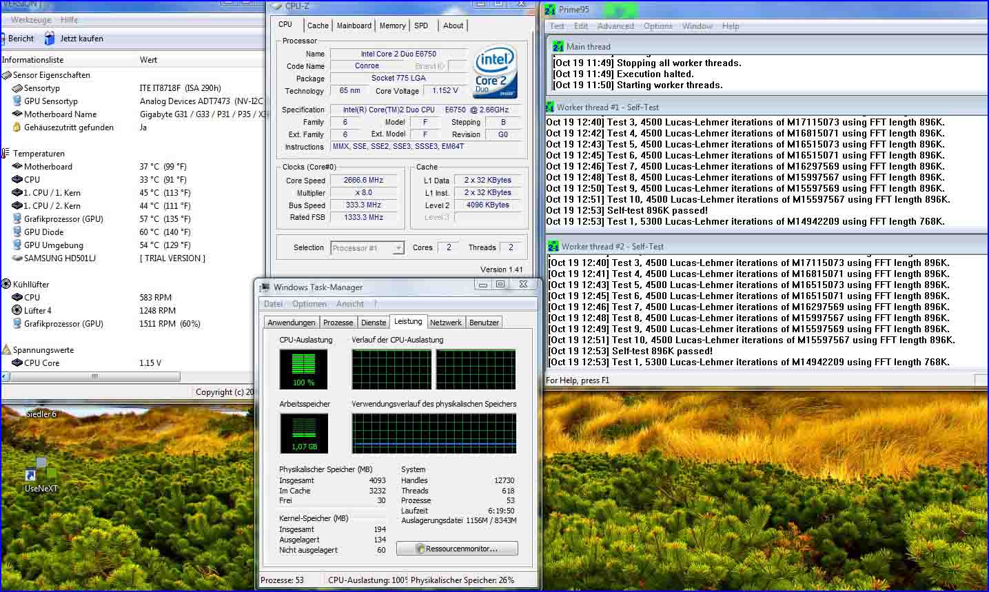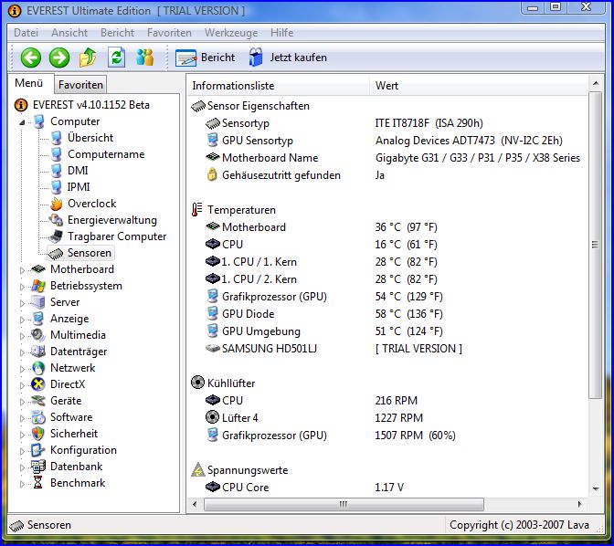 Ich würd mal versuchen mit nem andren Prog. die Temps uaszumessen, den selbst mit sehr guter Kühlung können solche Temperaturen nur bei sehr geringen Raumtemperaturen entstehen.